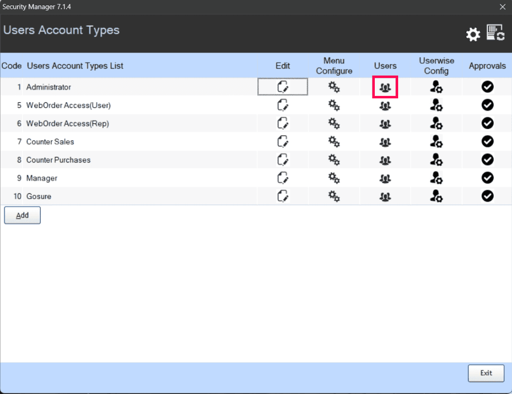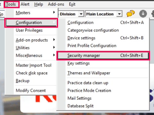 Open the POS and navigate to Tools > Configuration > Security Manager.