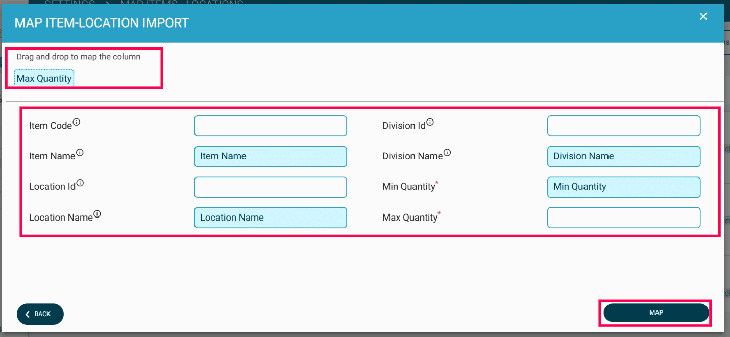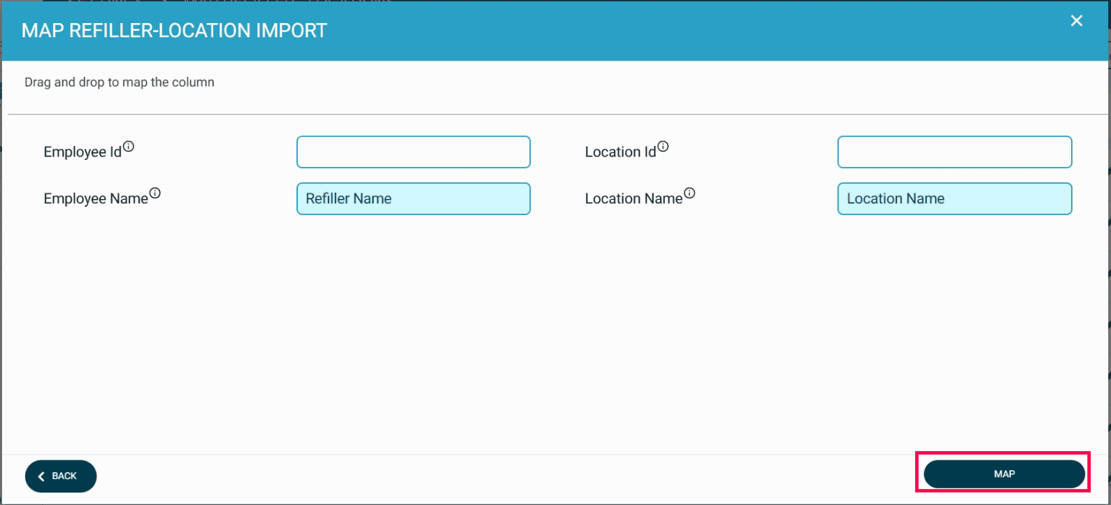Drag and drop to map the columns with their respective fields.