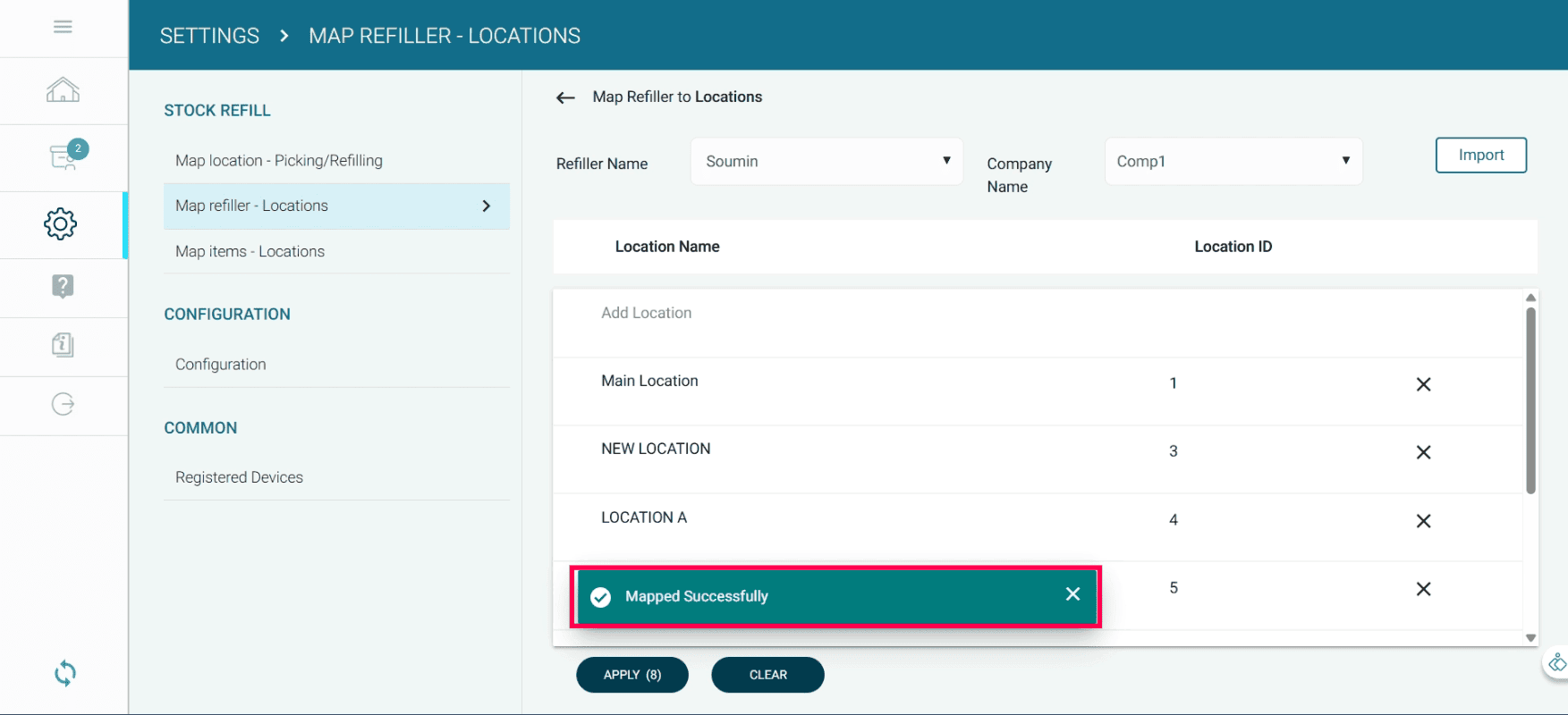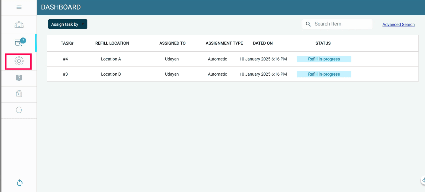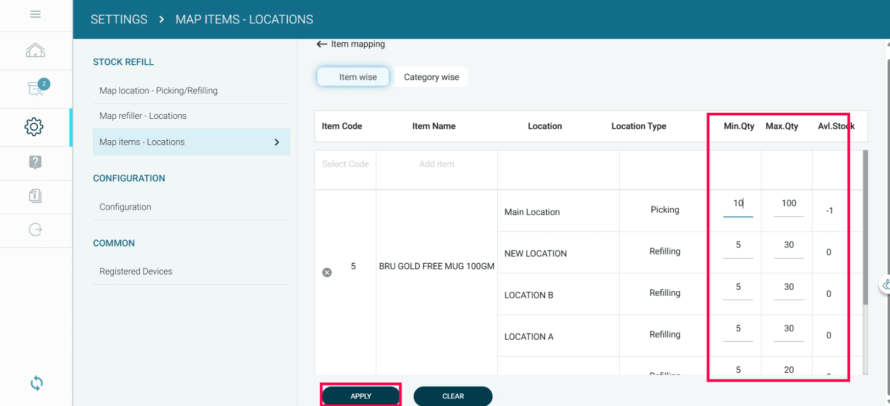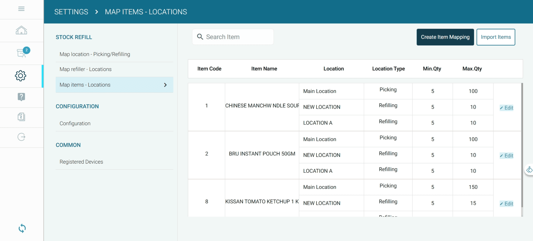 When the stock at a refill location falls below the minimum quantity, a refill task is automatically assigned to the mapped refiller.