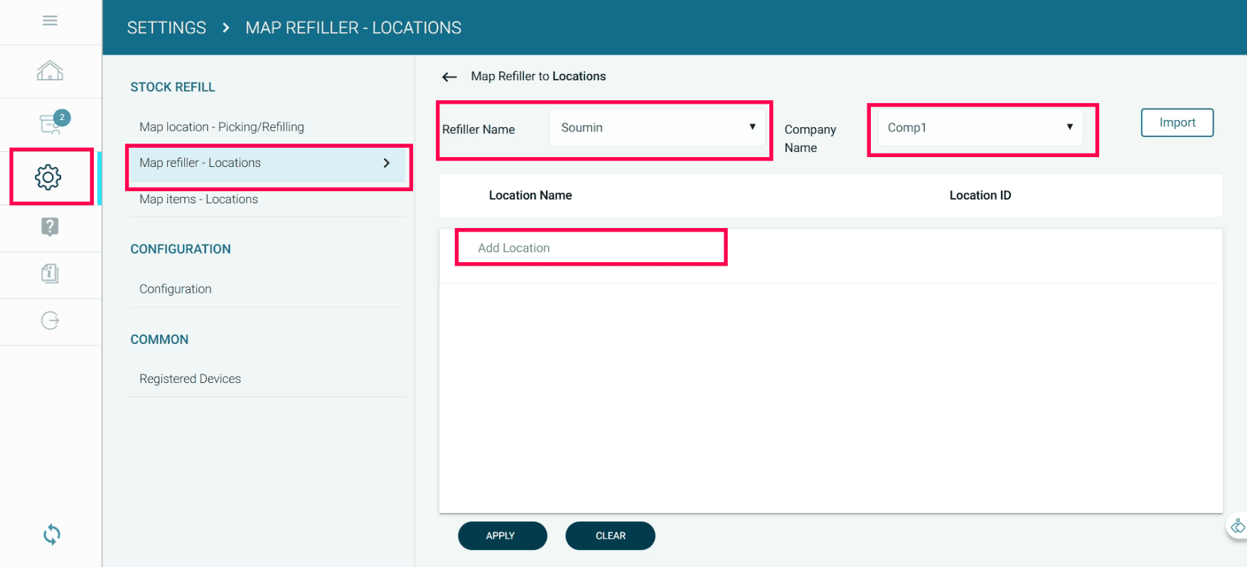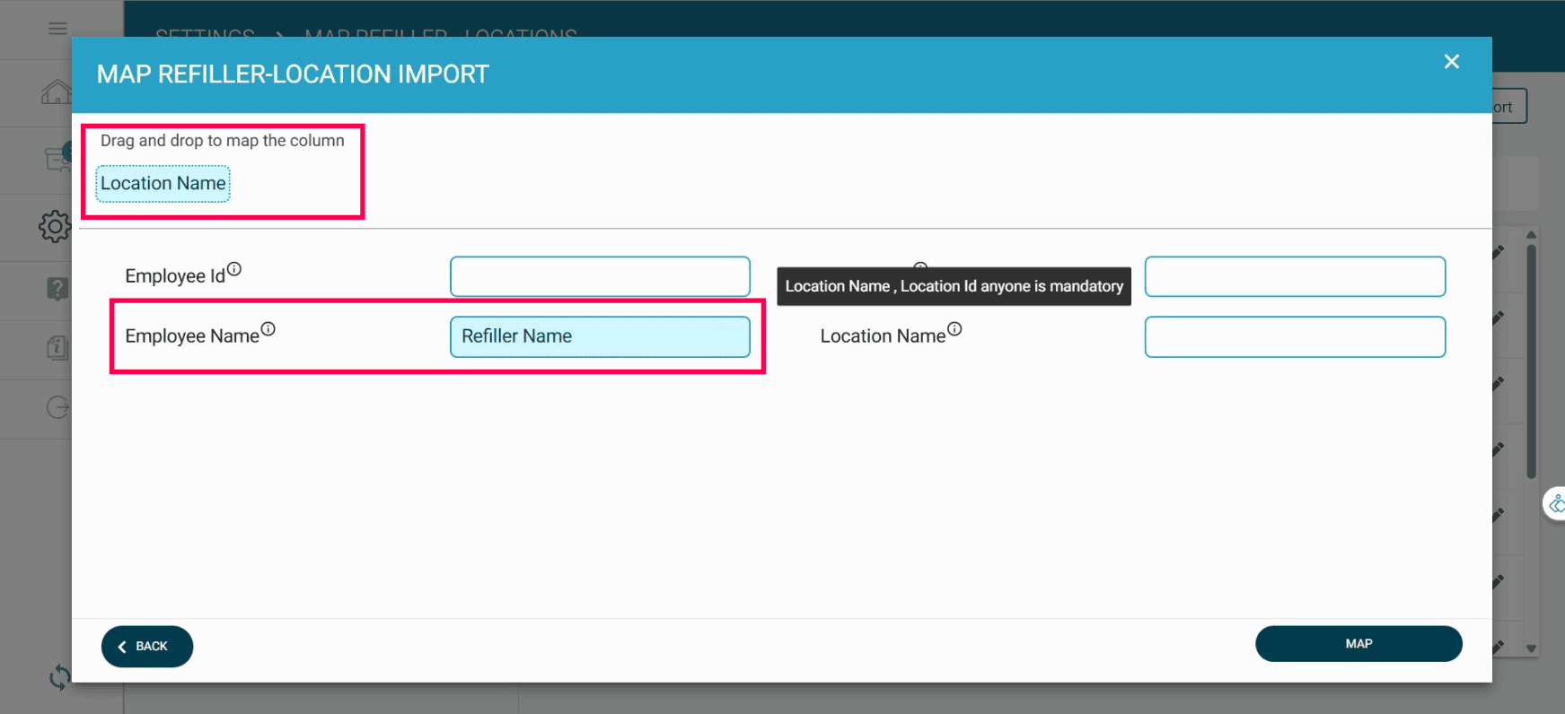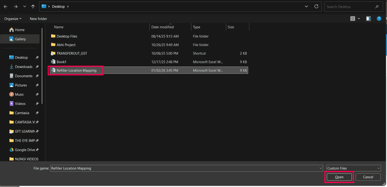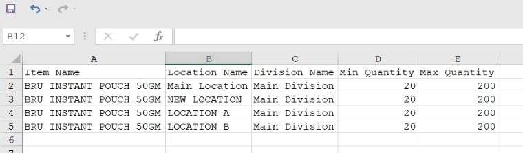 If you want to import the Refiller Name and the Location Name in bulk, create an Excel file with the heading Refiller Name and the Location Name.