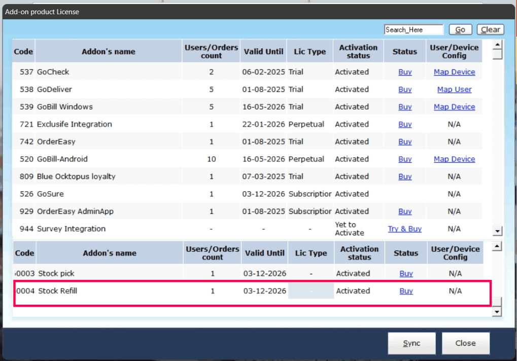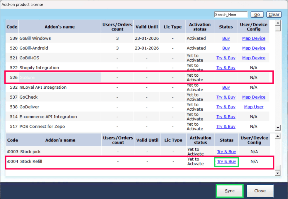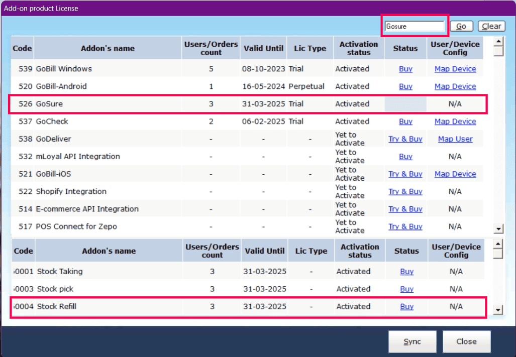 Search for GoSure, then click the Try & Buy button for Stock Refill.
