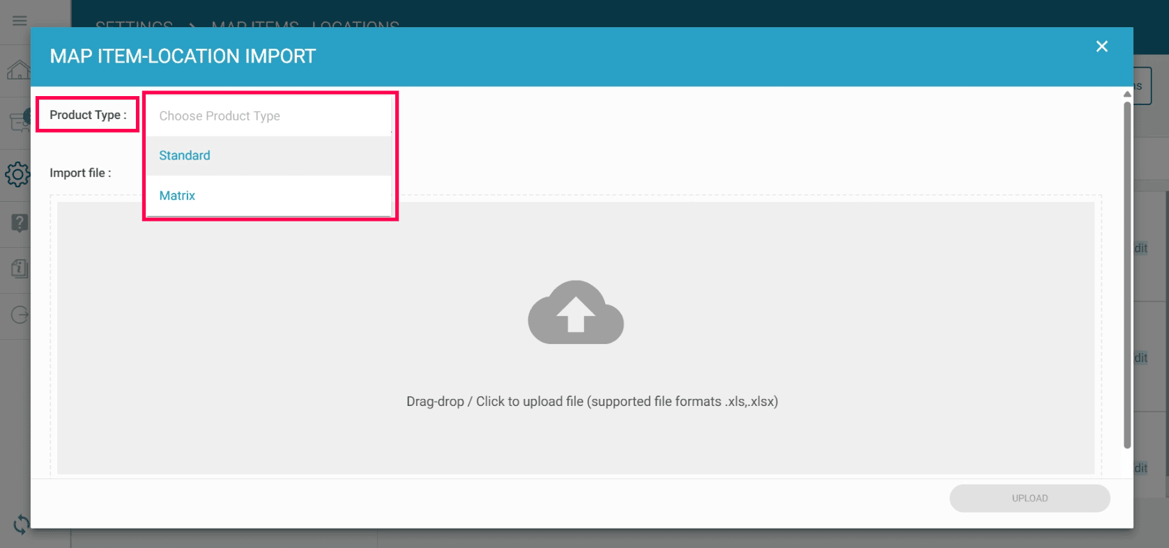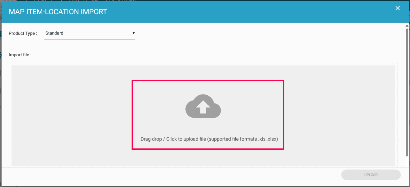 Drag and drop or click to upload the file. (Supported file formats: xls, xlsx)