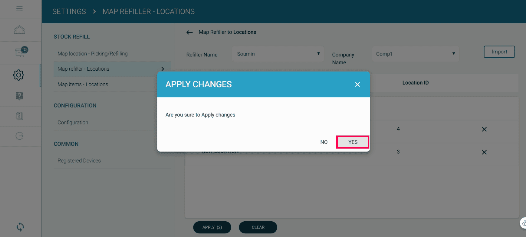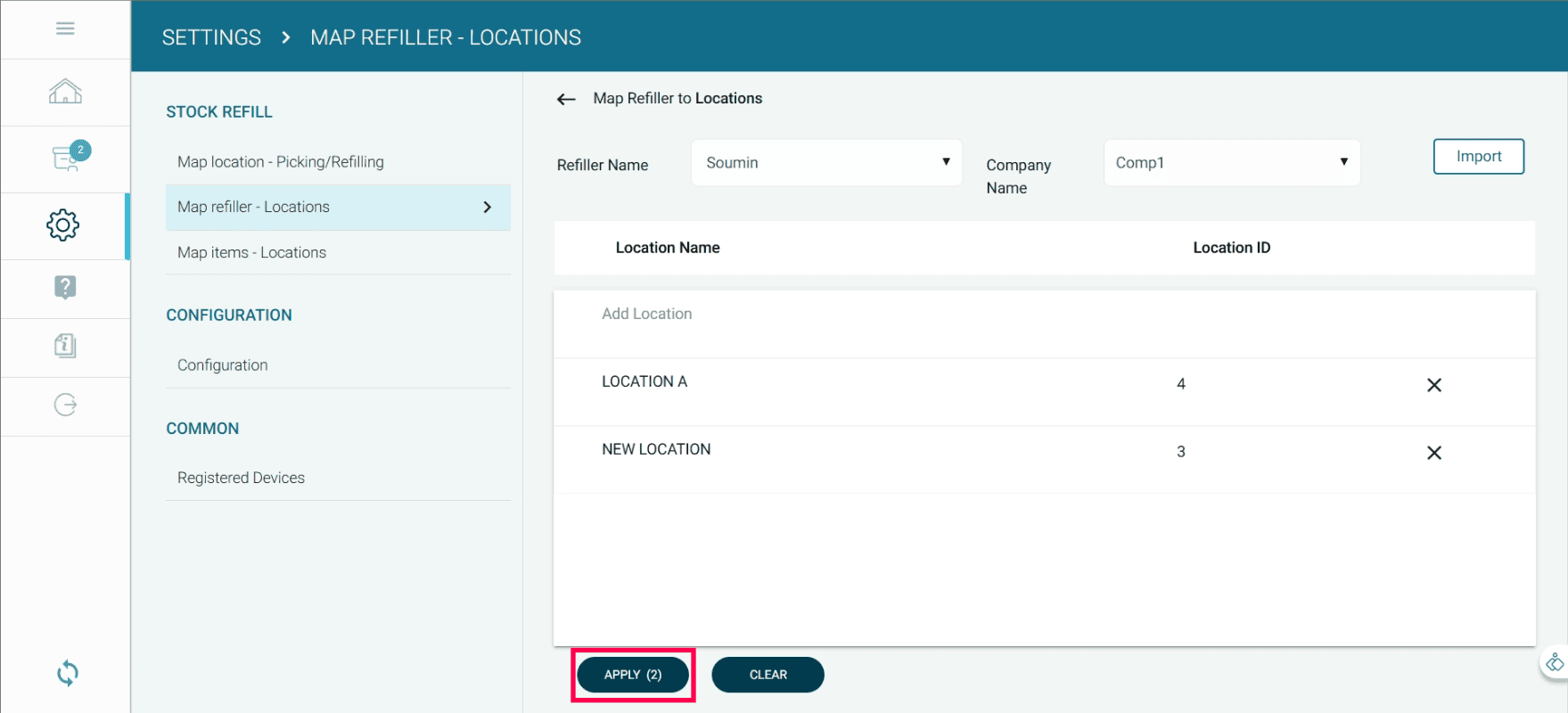 Select the refilling location by adding a tick ✔ to the checkbox.