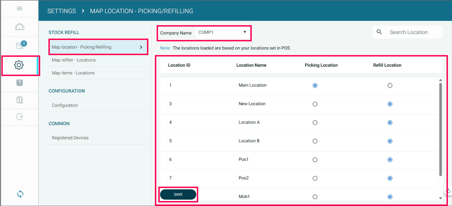 You can configure Picking Locations (e.g., godown or backroom) and Refill Locations (racks, shelves, or bins in the store).