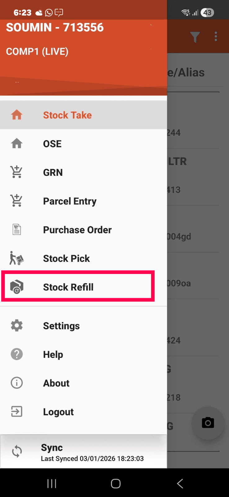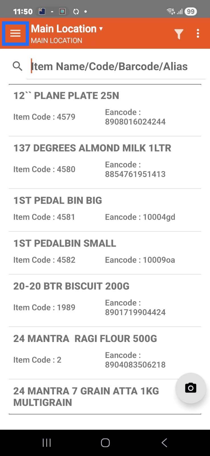 When the stock of the item is available by any ways, you can resync the mobile app and the sync gets completed, the app screen will appear as follows.
