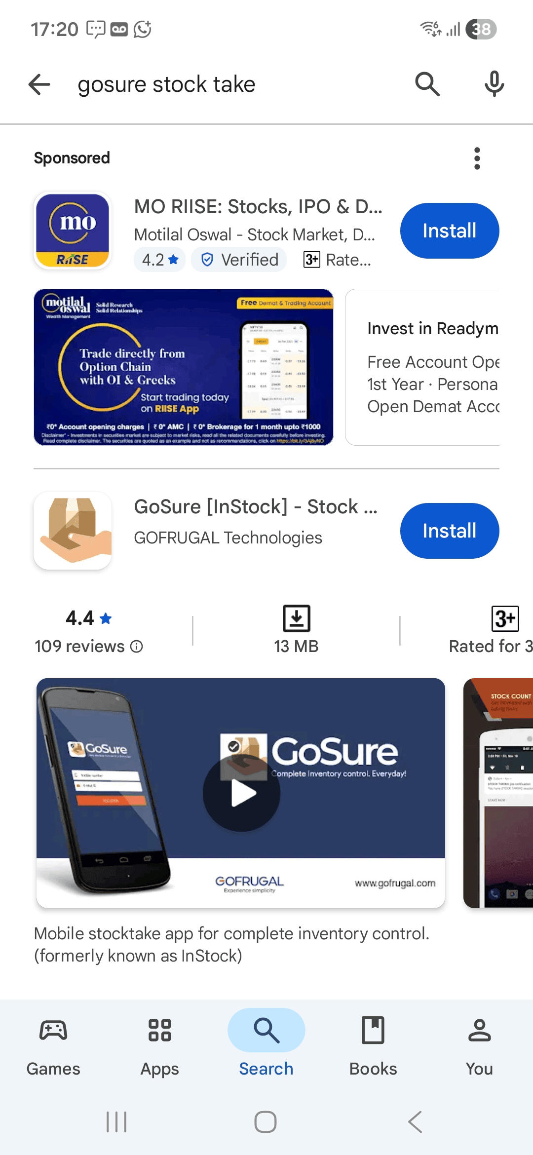 Open the Play store app on your mobile device, then search for GoSure Stock Take.