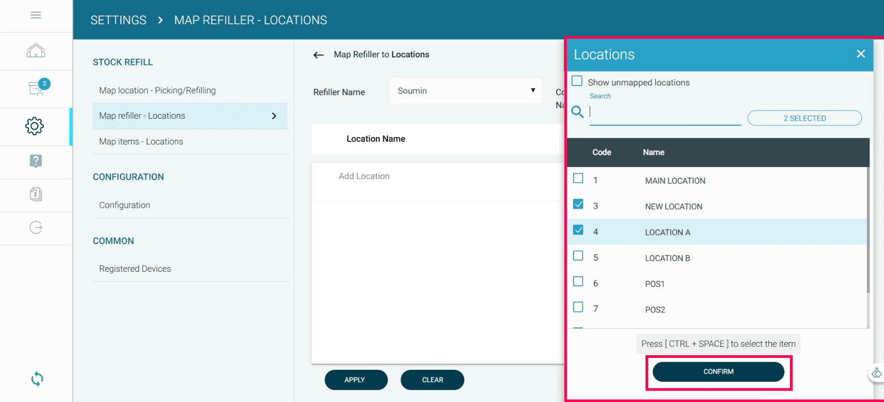 Select the roles by pressing space bar. In this case, select STOCK REFILLER & STOCK REFILL MANAGER.