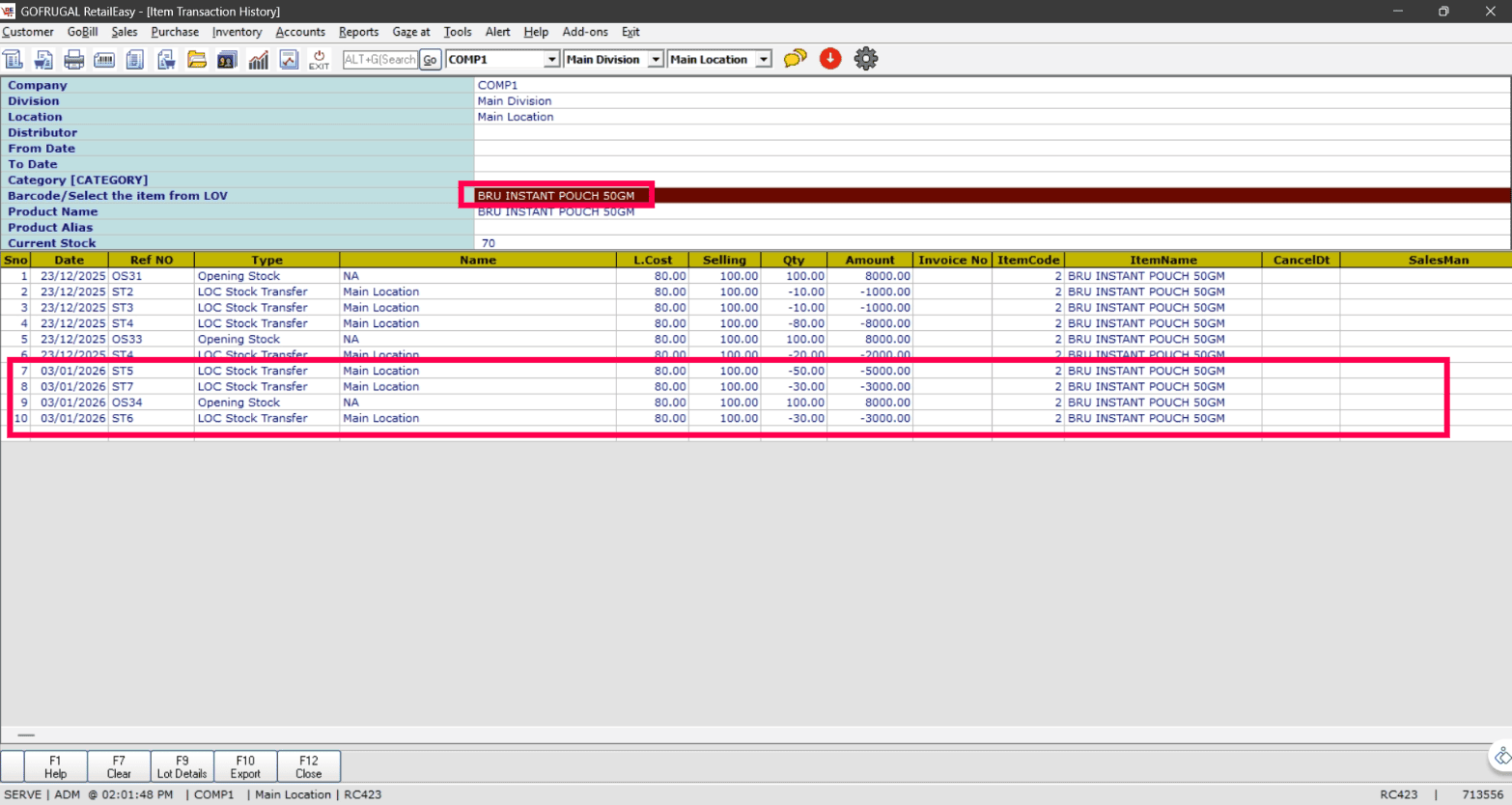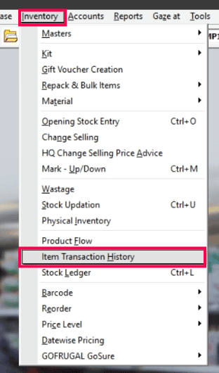 Select the item and check the transactions. You will notice that LOC Stock Transfer entries that were made using the GoSure Stock Refill.