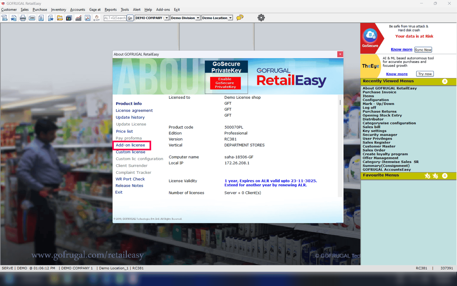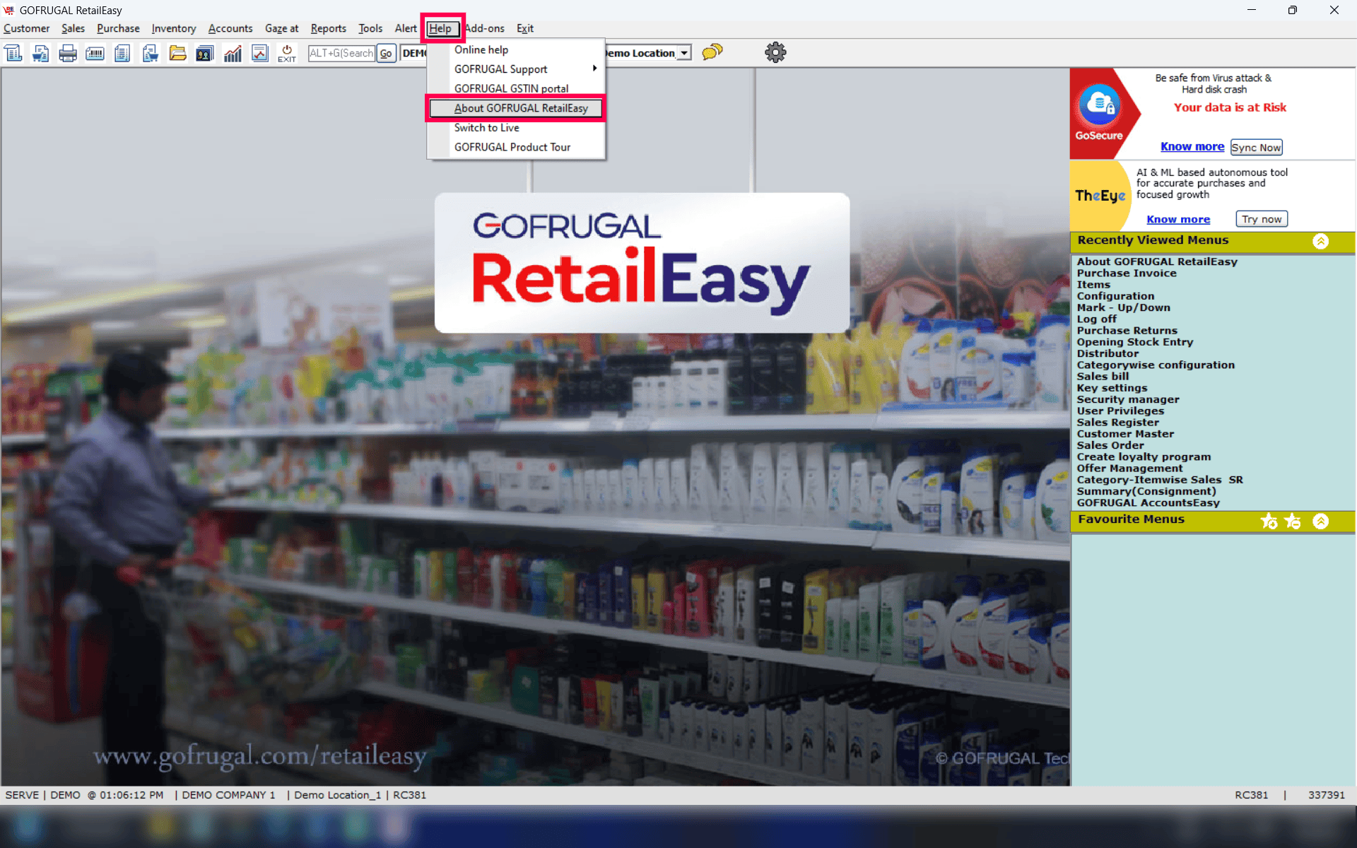 Navigate to Help > About Gofrugal RetailEasy.