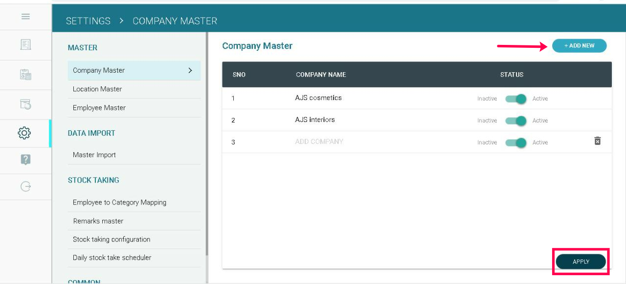 - If you wish to make the status inactive for any of the companies you can do it here.