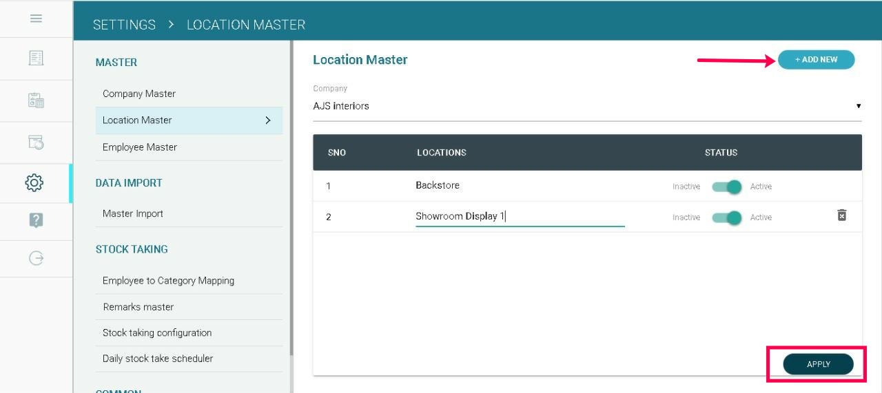 - Go to settings menu >> Under the Master section you can find the "Company master" & "Location Master" options.