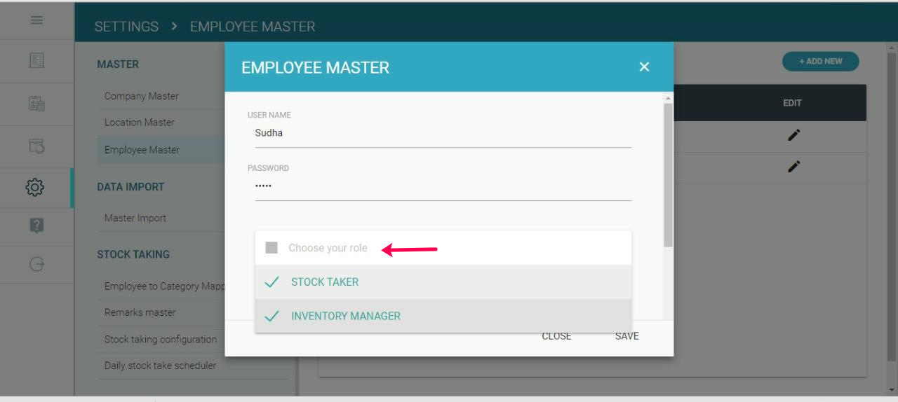 - You can select the employee role (Stock taker/ Inventory Manager)