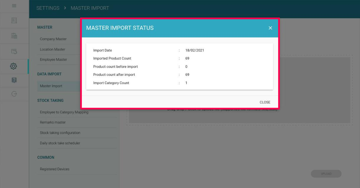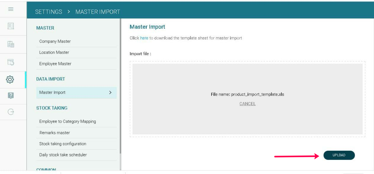 - Click on Master Import. Here you can upload the file consisting of the items to be loaded for stock counting.