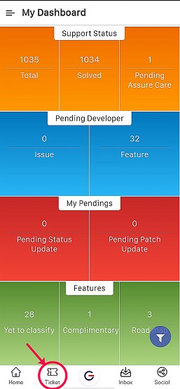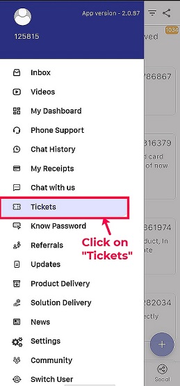 Step 1: Login to MyGofrugal app with your respective user ID. Once you have logged in with your user ID, you can select the “Tickets” option from the menu.