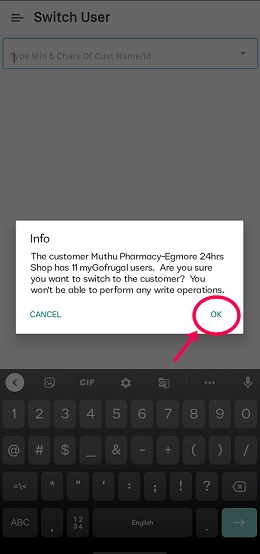 Step 1: Open the My Gofrugal app on your device. Look for the "Switch user". In the app's menu, you may find an option such as "Switch User". Tap on the "Switch User" option. This will log you out of the current user account.