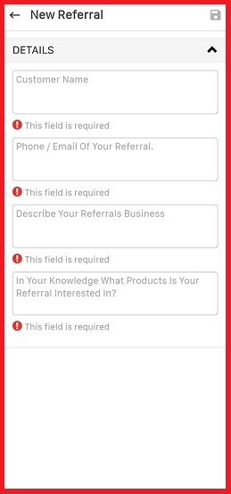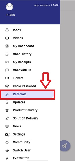 The "Referral" menu allows users to refer potential customers to GOFRUGAL's software through Referral section in MyGofrugal app, helping them expand their business reach. Users can enter contact information and submit referrals for consideration.