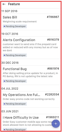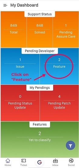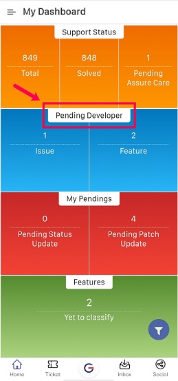 Pending Developer has 2 sub-divisions known as issue and feature. It helps the customer to know about the issue and feature status. If the customer is facing any issues under the existing software, then this comes under Issue.