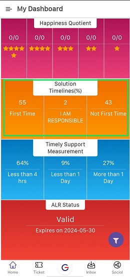 Step 2: On the My Dashboard, locate the section related to support tickets or reported issues. Within this section, you will find the Solution Timeline associated with each support ticket or reported issue.