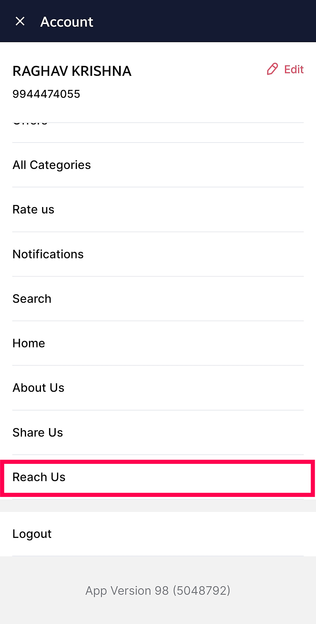The end-user can use can also use the " Reach Us " option in your branded app and the status will be shared as push notifications as shown in the below images.