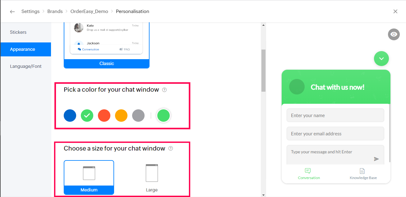 You are now able to customize the appearance of Sales IQ Live chatbot in PWA. You will be able to change the size and color of the Sales IQ live chatbot