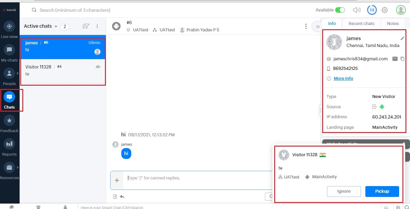 2. Live ChatBot (Salesiq)