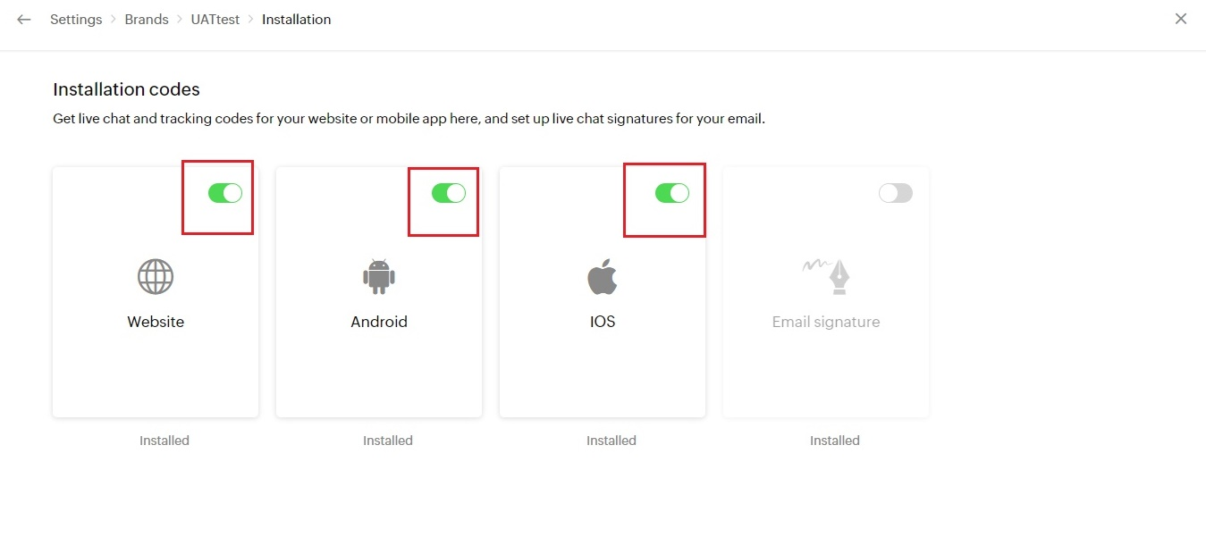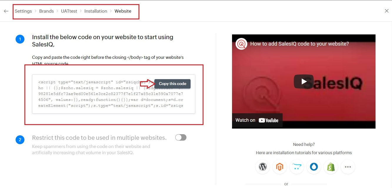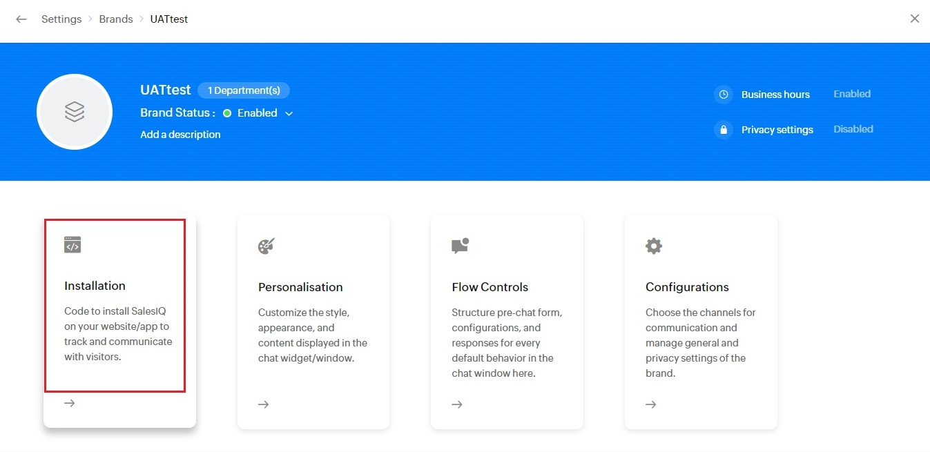 Once you click on the ListView with Company details, select Installation & enable the platforms (Android/iOS/PWA or Website) for which the salesiq has to be configured.