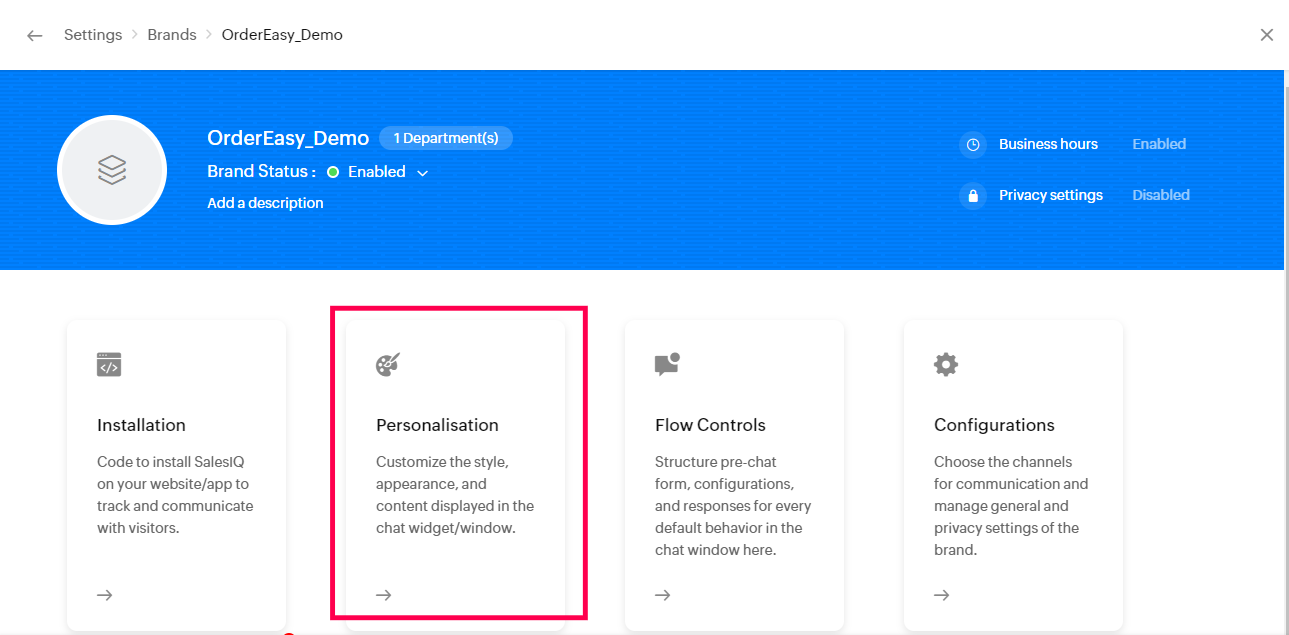 Follow these steps to customize the sales IQ live chatbot