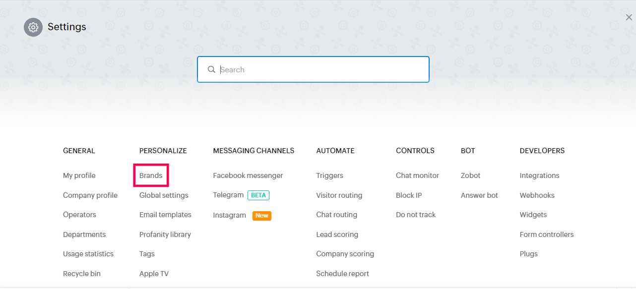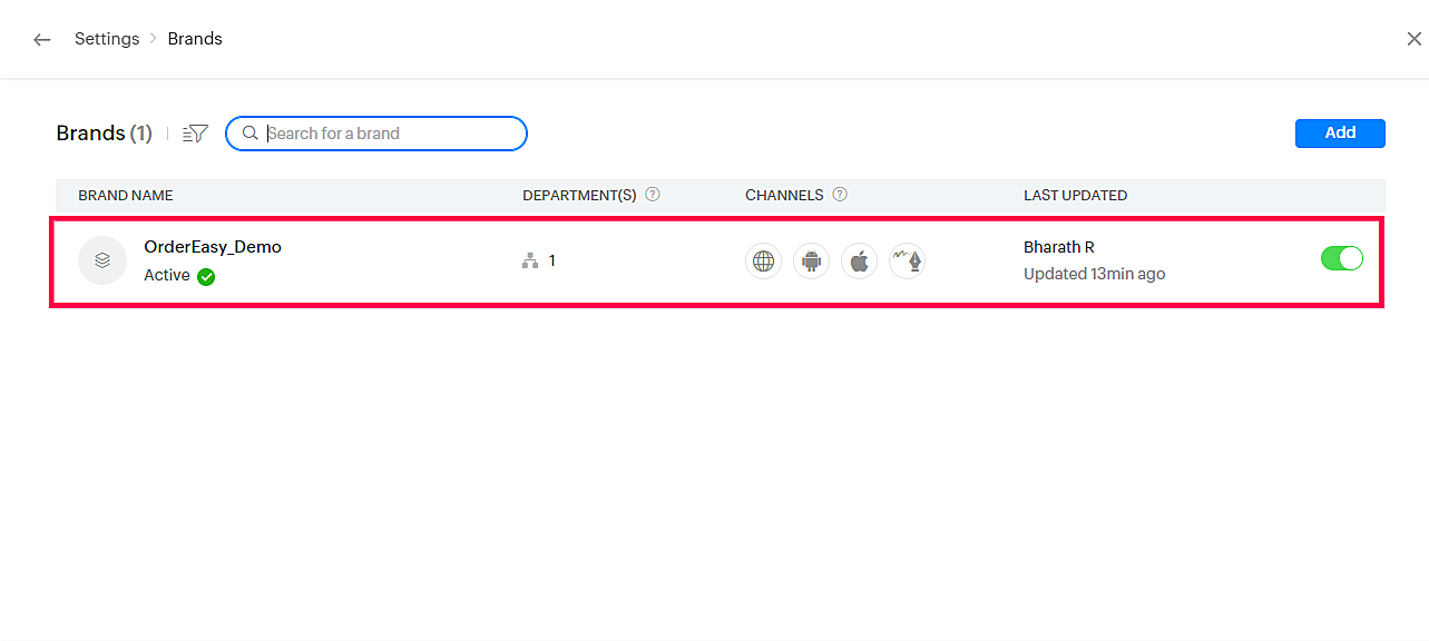Now go to the Salesiq account and navigate to Settings -> Brands and Click on the list view as shown in the below images.