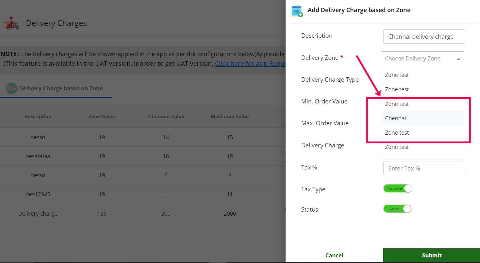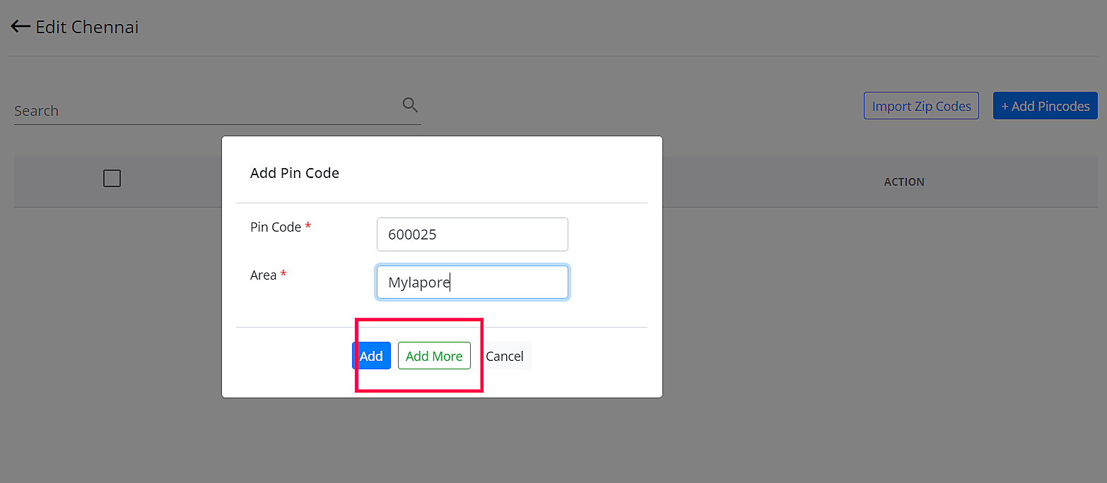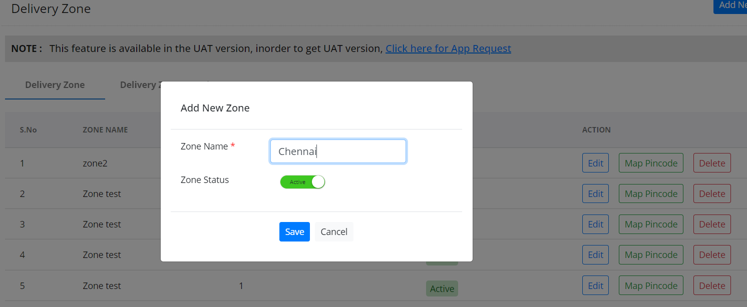 Step 9: Create a zone by adding the pincode and its area name