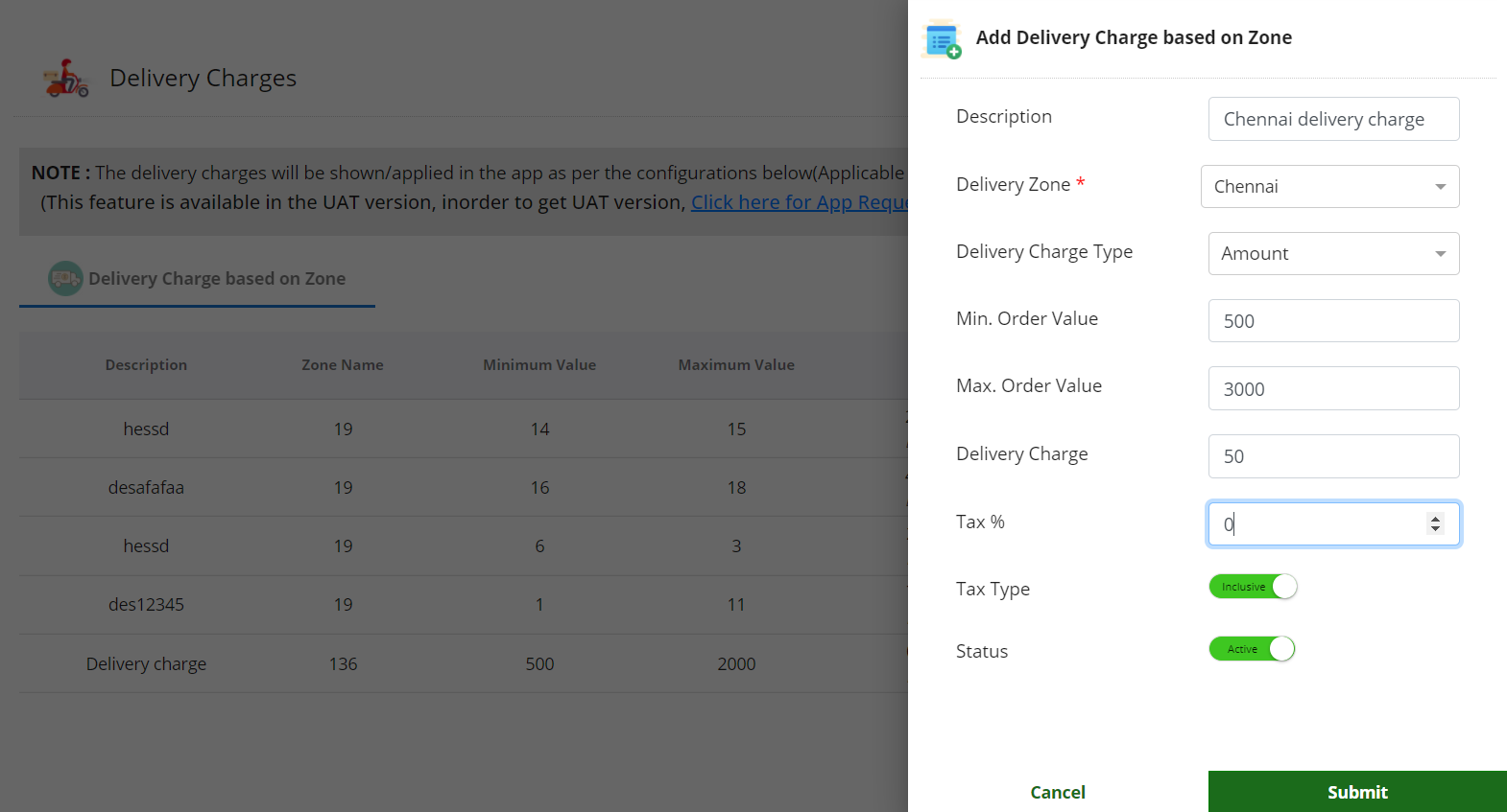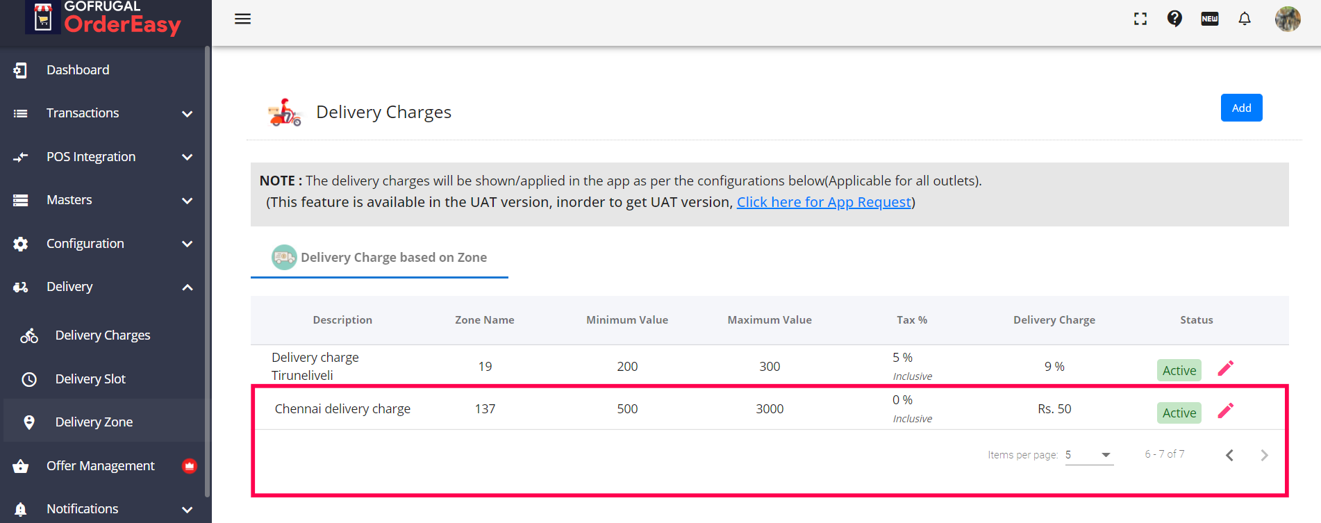 Step 22: You can set delivery charges based on the zone and make it as active