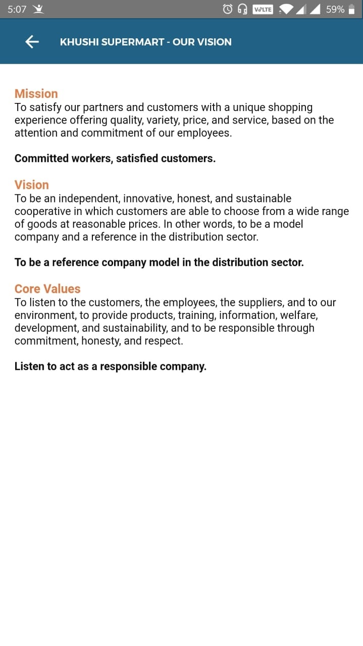B) Similarly, they can see the text content you have mapped to the "Our vision" menu upon clicking it in the app.