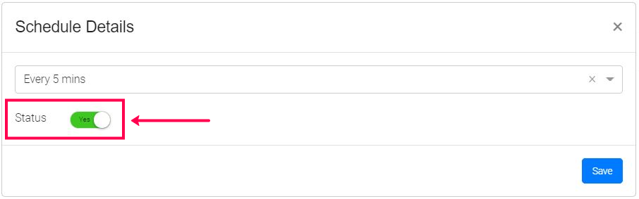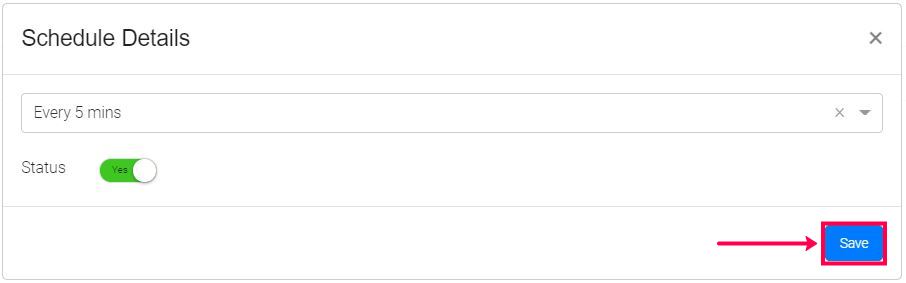 ii) Toggle the Status button to 'Yes' to activate the scheduler.