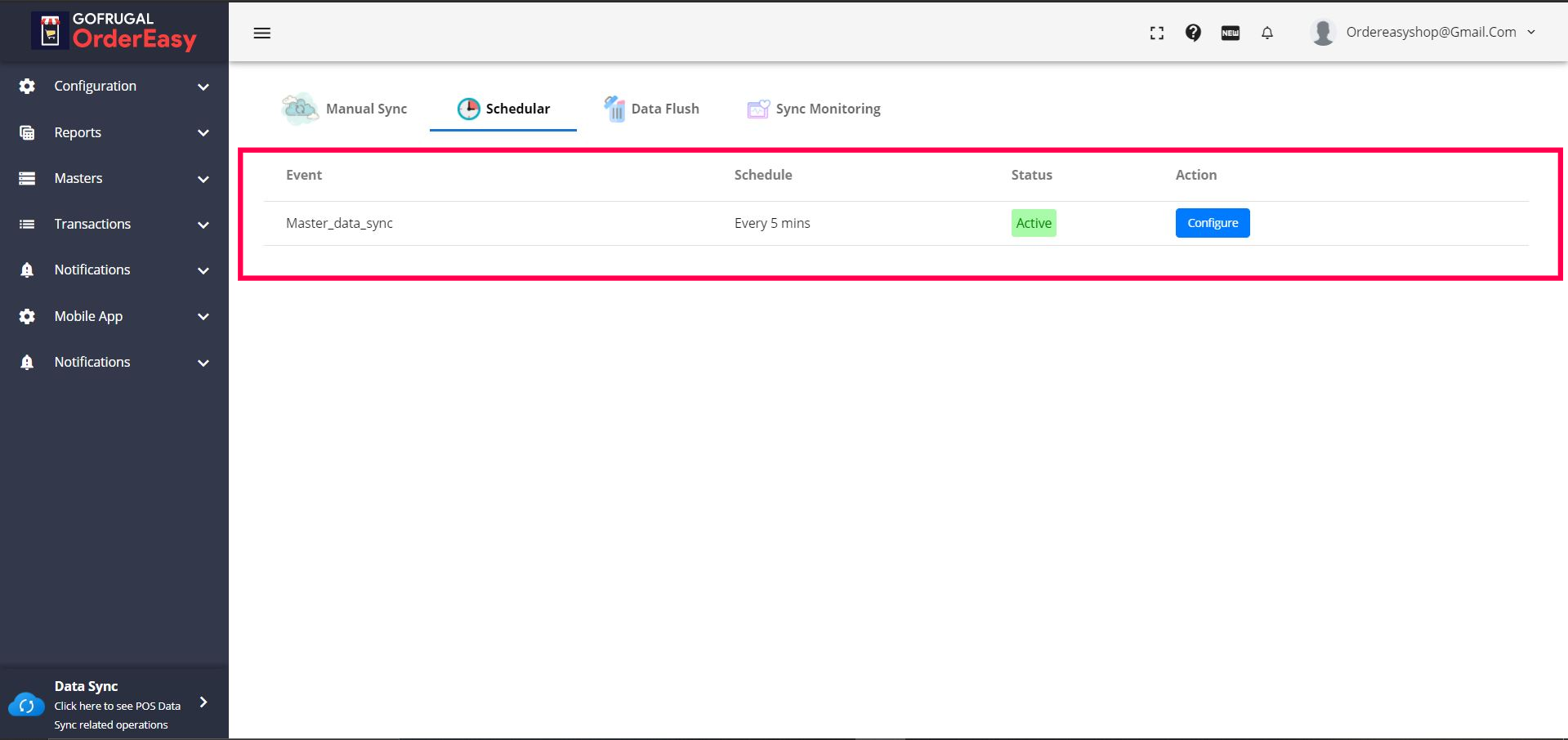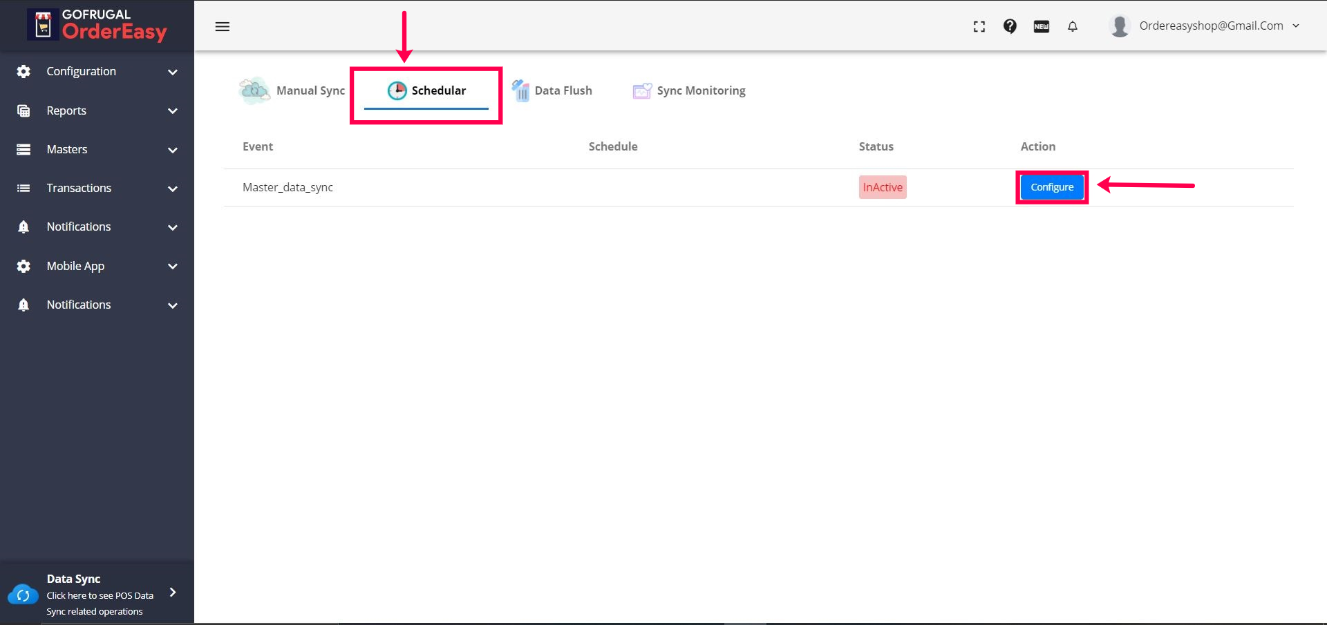 Step 3: Click on the 'Scheduler' tab & click on the 'Configure' button.