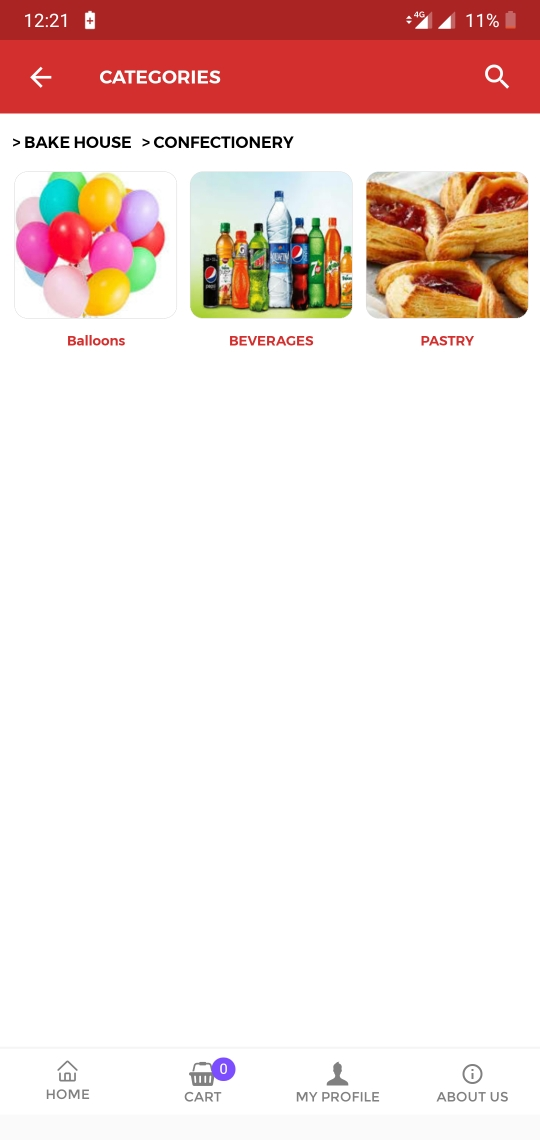 Hence in the app, you'll be able to see the tree structure drill down on clicking the Bake House category from the home page.