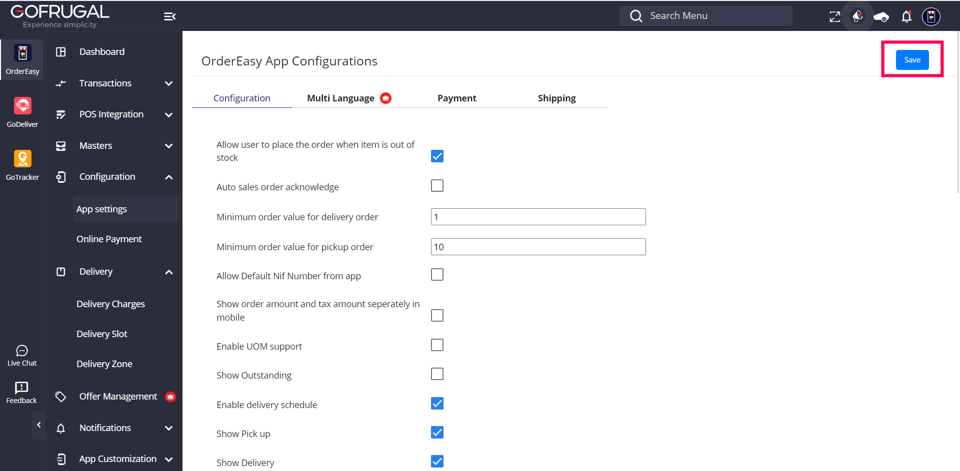 Finally click "Save" to enable the configuration. Now, all the new users will be blocked from using your OrderEasy application. But the members who have been given access by you can continue to use the application without any error or restriction.