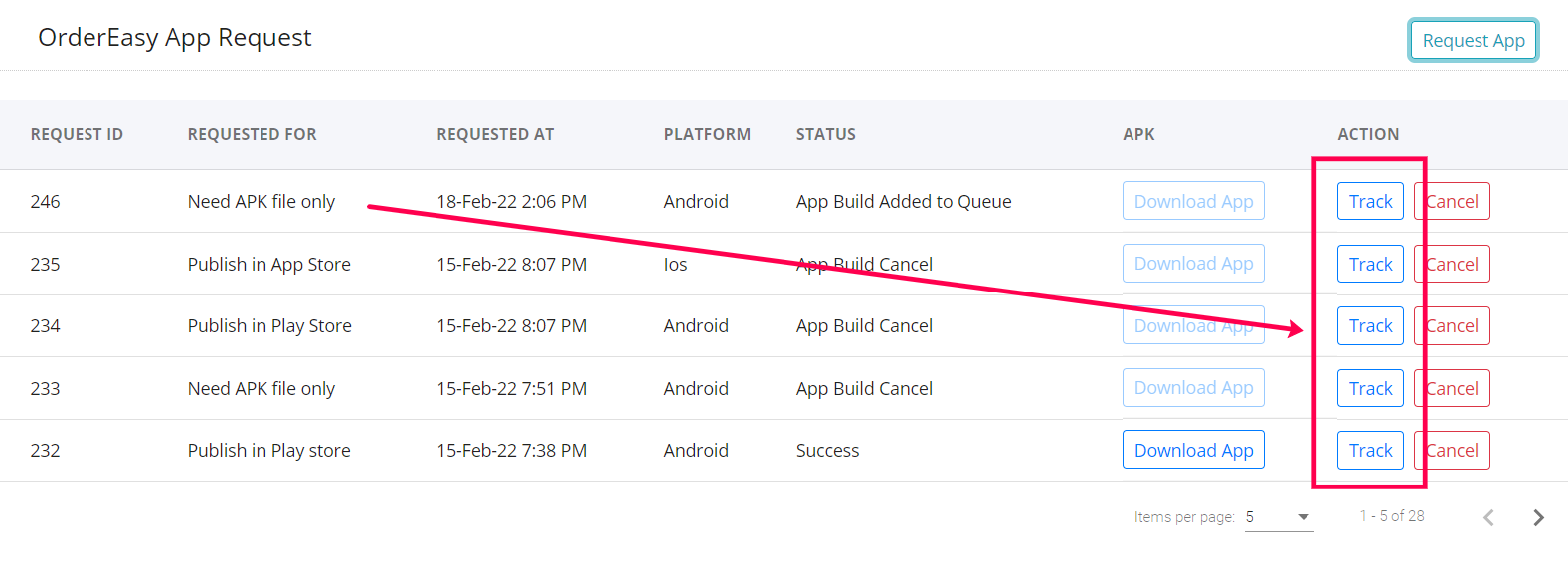Step 12: You can track the status of your request by selecting the Track option on the right side of the list of requests