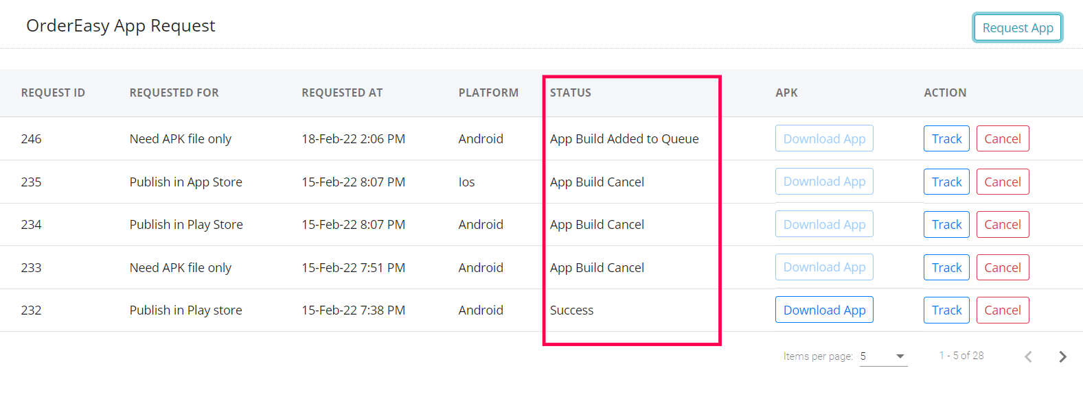 Step 11: You can view the status of your request on the OrderEasy App request screen