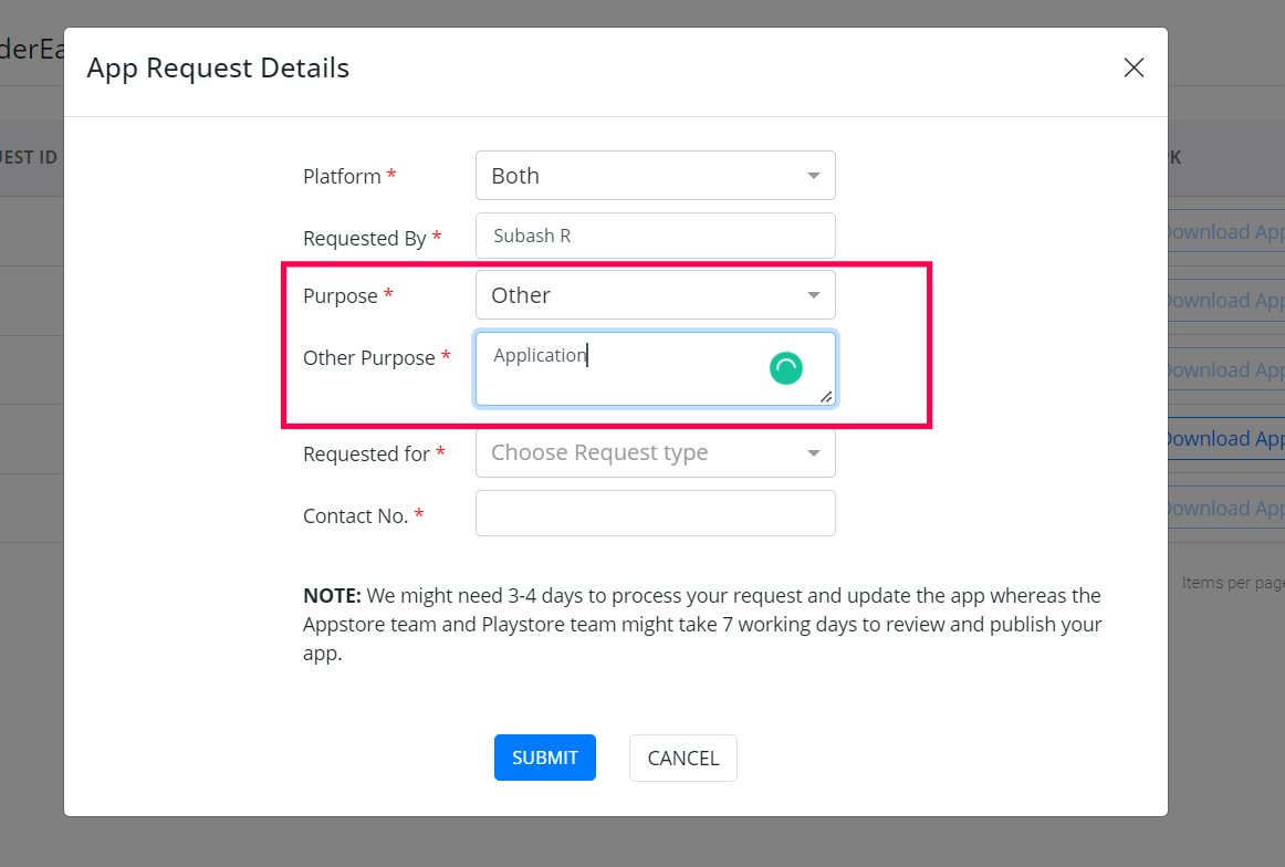 Step 4: When you select App request, a popup will appear as shown below