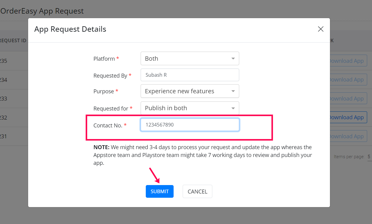 Step 9: In the next step, you will need to enter the contact number and submit the request