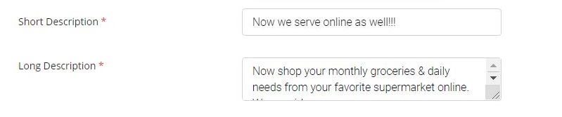 Note: The character limit for Short Description is 80 & for the Long Description it is 4000.
