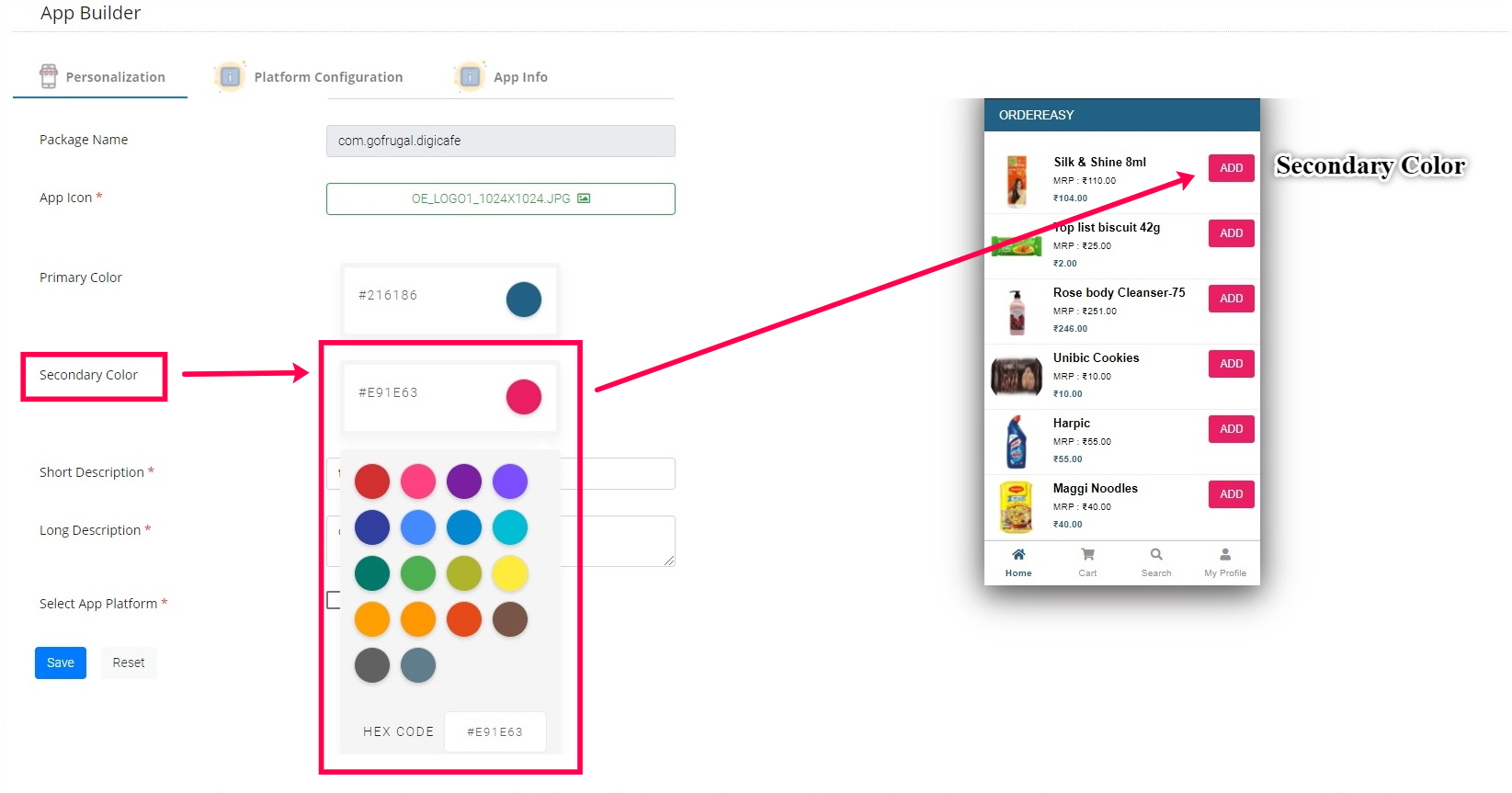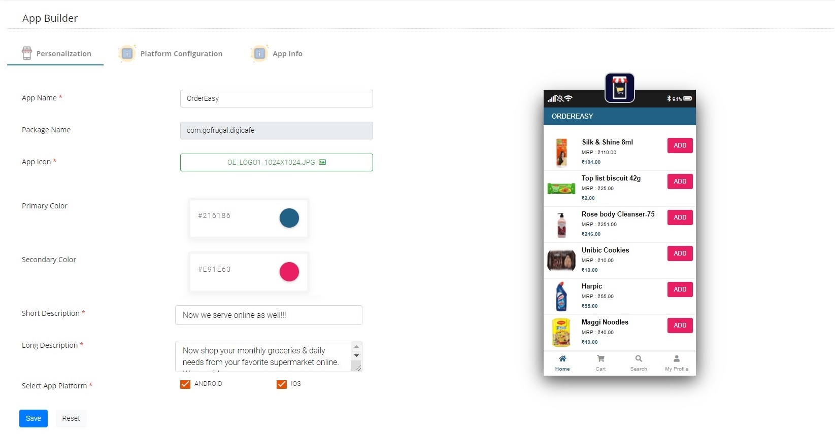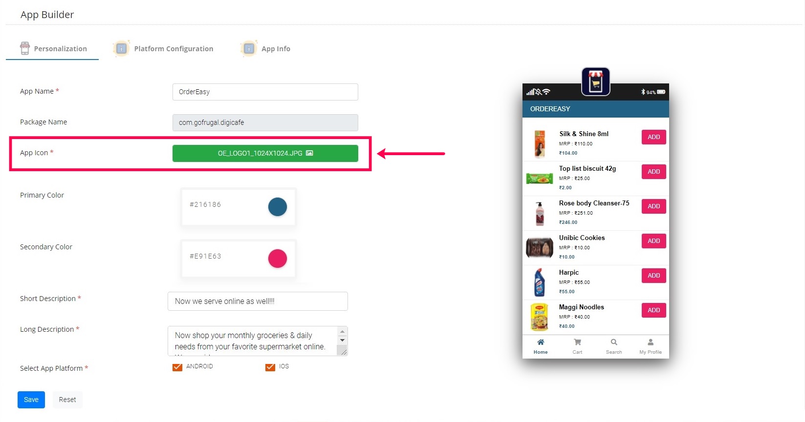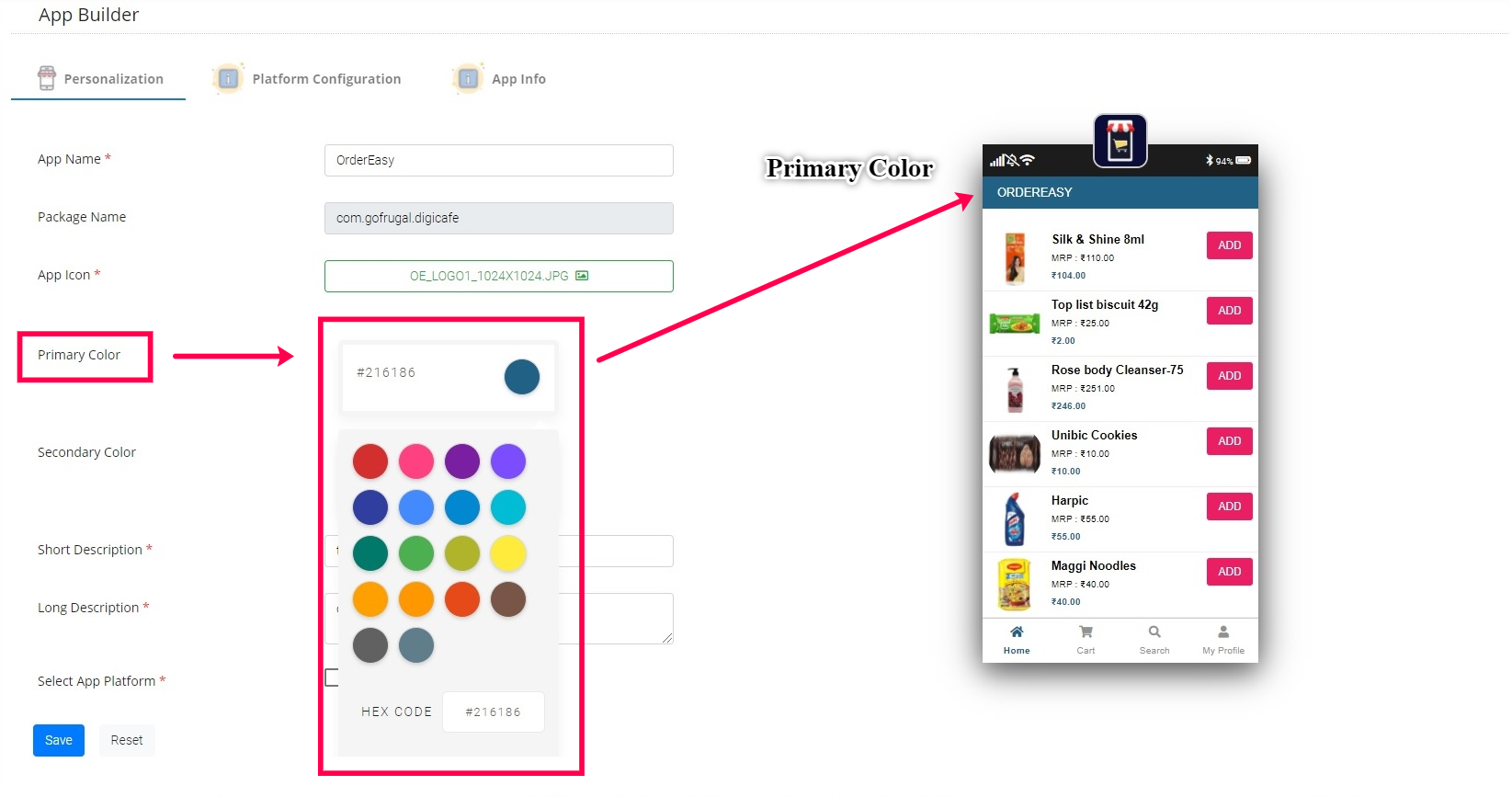 1. If you want to change the color theme and logo of your app. Make the necessary changes on 'Personalization' screen (refer step 1) and then raise an update request to update your app with new logo/color theme.