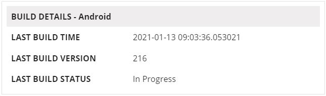 ii) BUILD DETAILS - Android & BUILD DETAILS - IOS: Here you can view the date & time of the last app update, the current version of your app, & the status of your current app build.