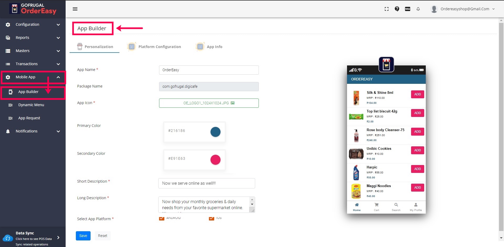 Now along with the in MyGofrugal app, in the OrderEasy menu, you can also raise a new app development request from the integration portal.