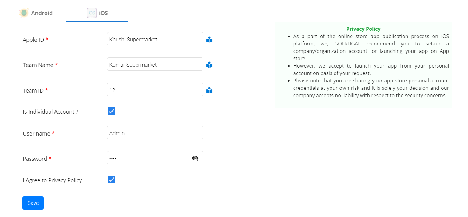 v) Username & Password: Only If the above checkbox is checked, these options will be visible. Enter your App store credentials in the given textboxes.