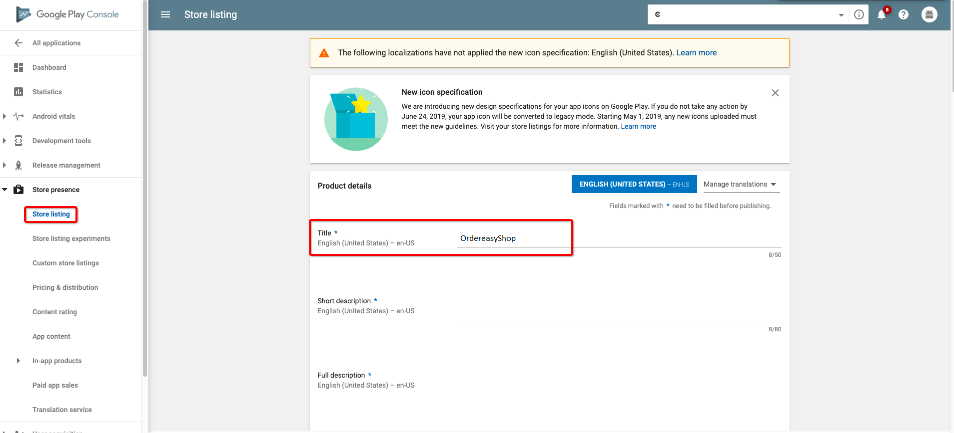 Note: This will only change the app's name in the Play Store (in appearance). If you want to request the app name (post-installation) please do it using the 'App builder screen' in the integration portal. Refer to this help document for help. Once it is done raise a request for an app update.