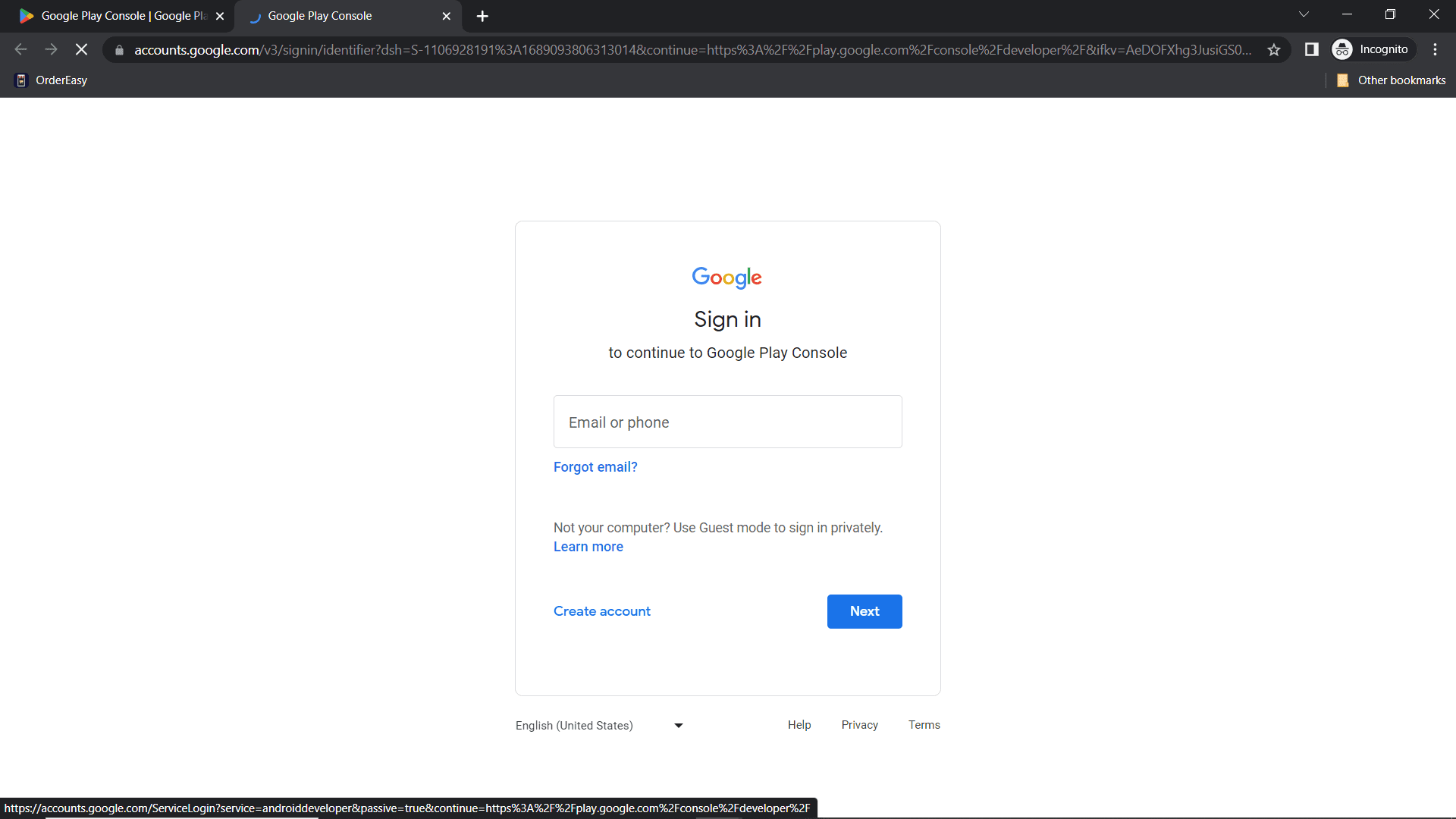 Step 1: Go to Google Play console and login using your play console admin mail Id