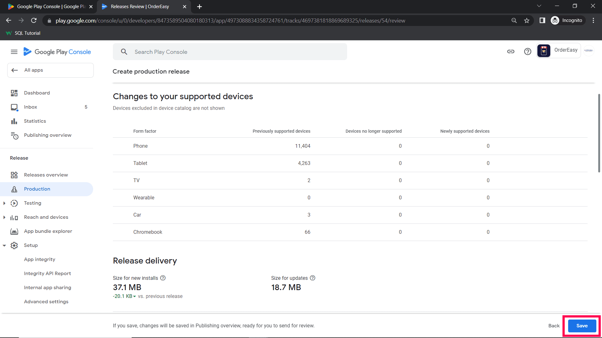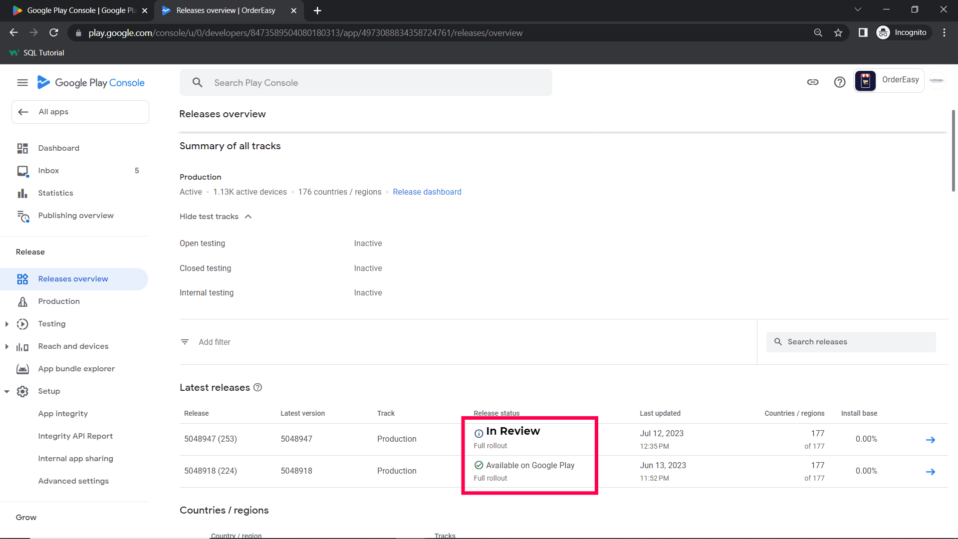 Step 10: After clicking Send change for review, check if the app is in review. On the Release Overview Page, the status should be in review.