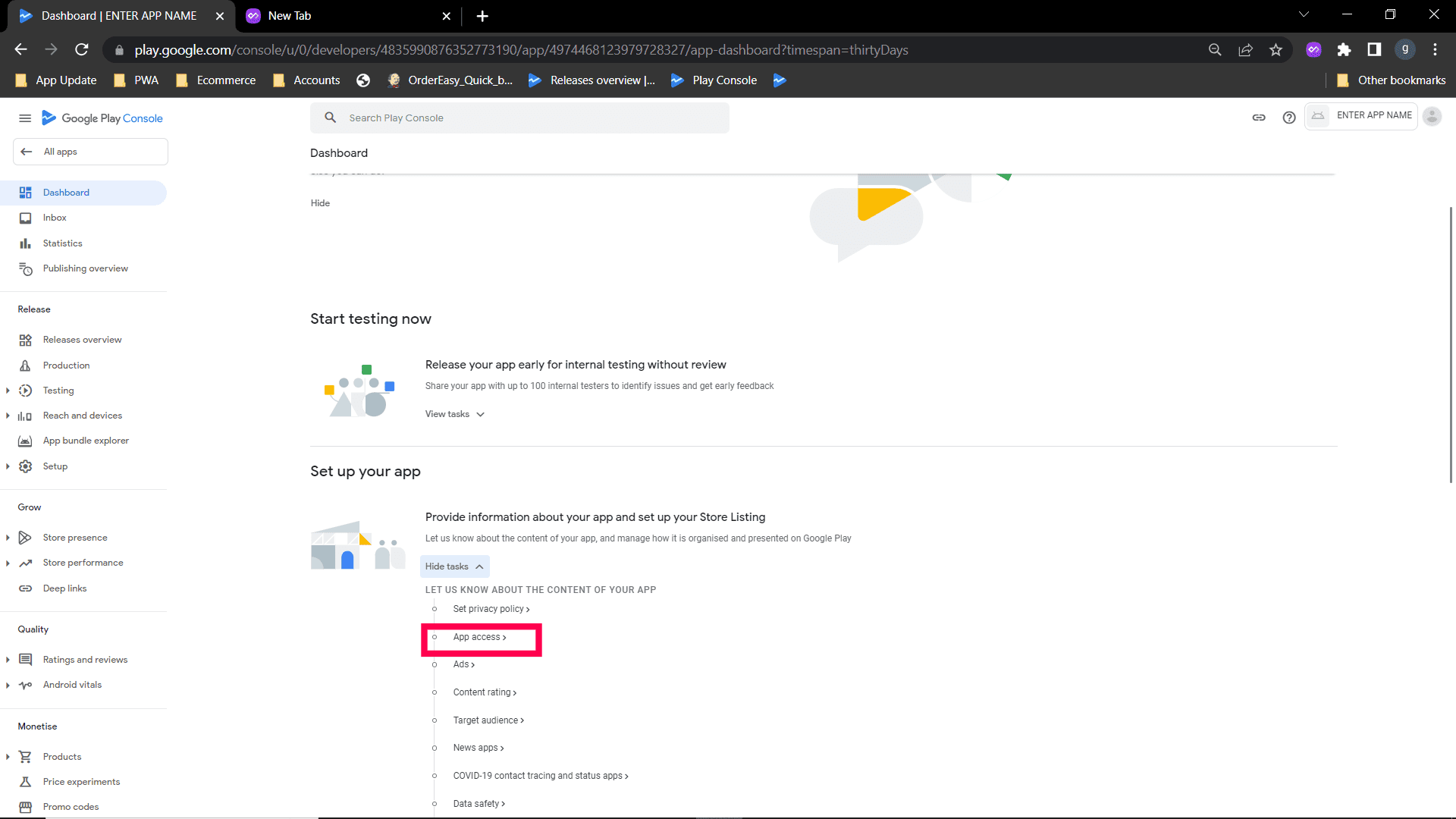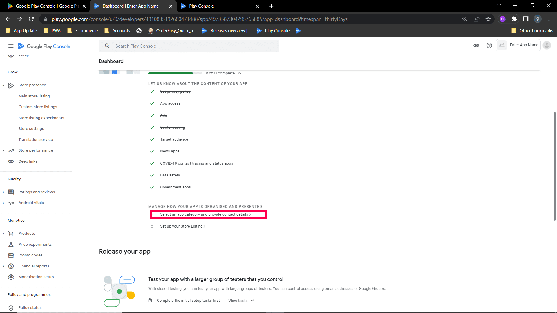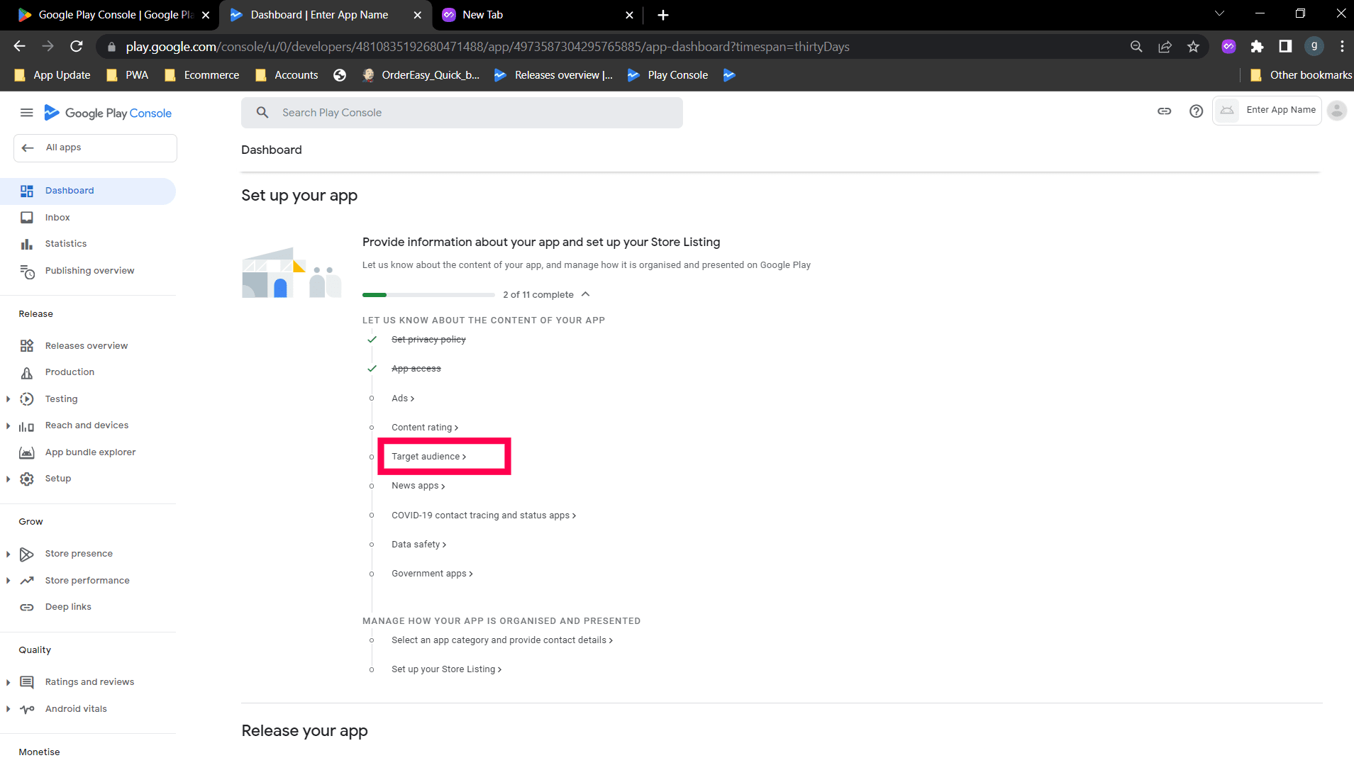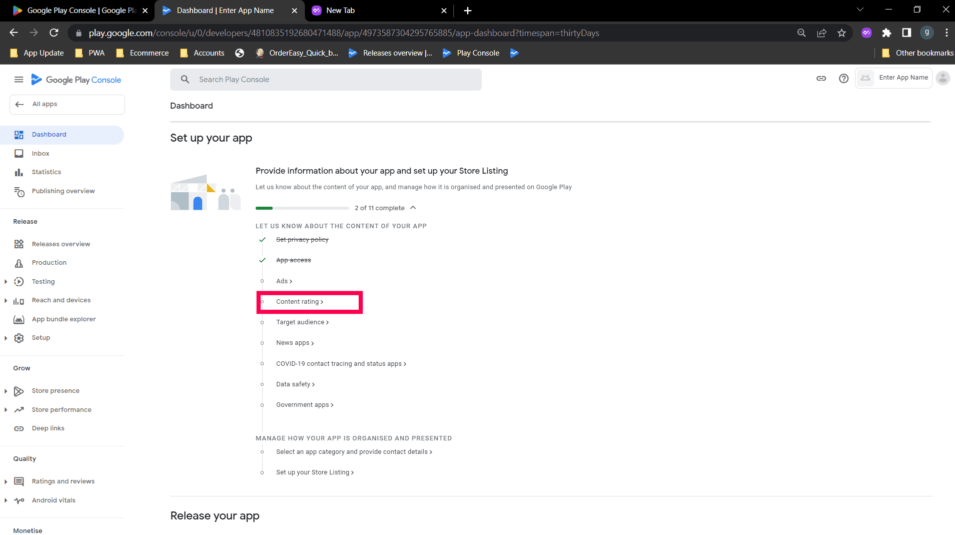 Step 2: Select "No my app does not contain ads option" and save. Go back to the Dashboard