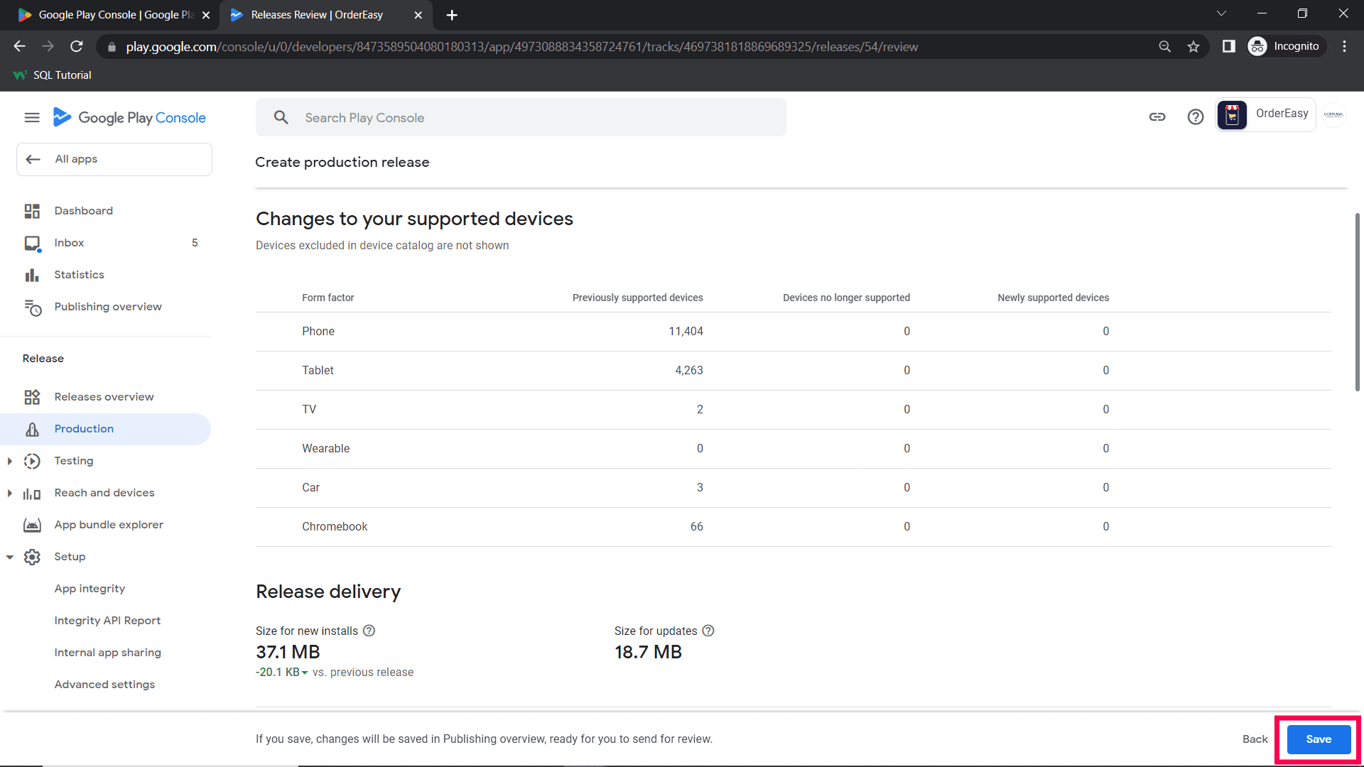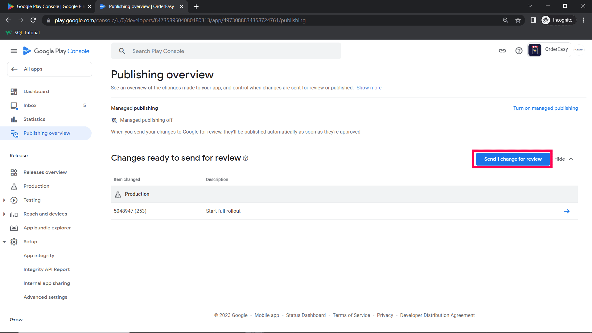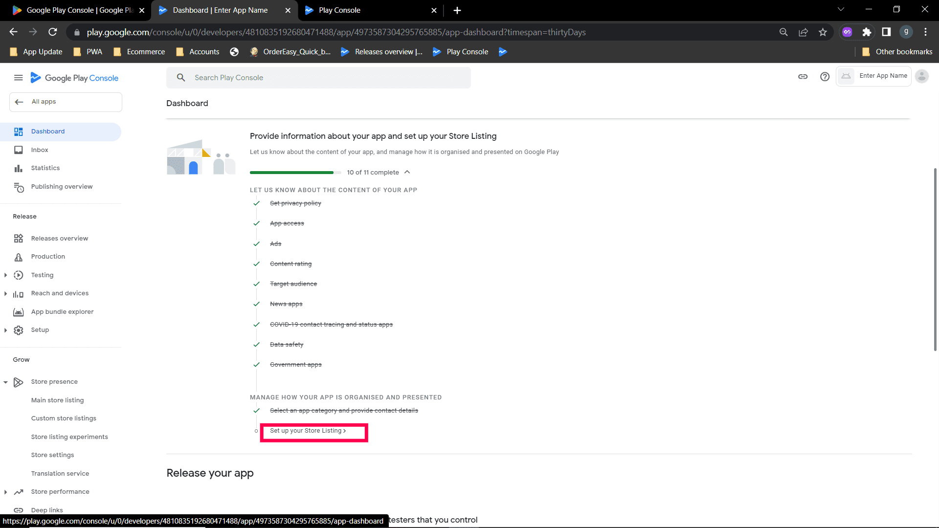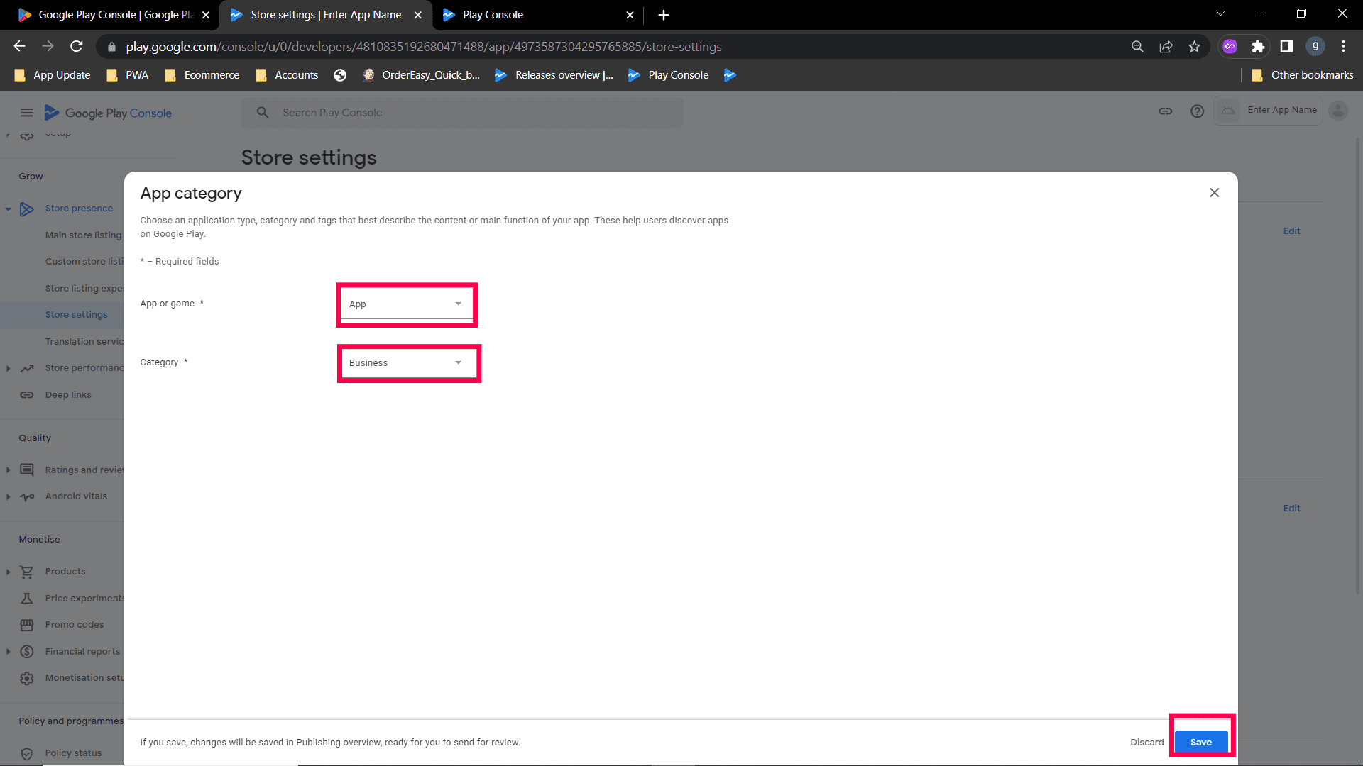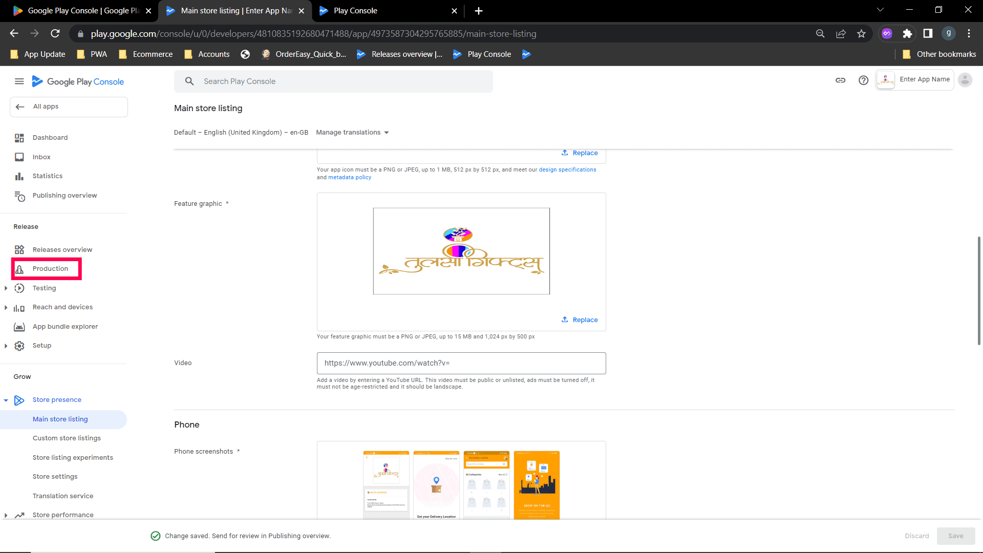 Step 10 : After Saving main store listing, click Production