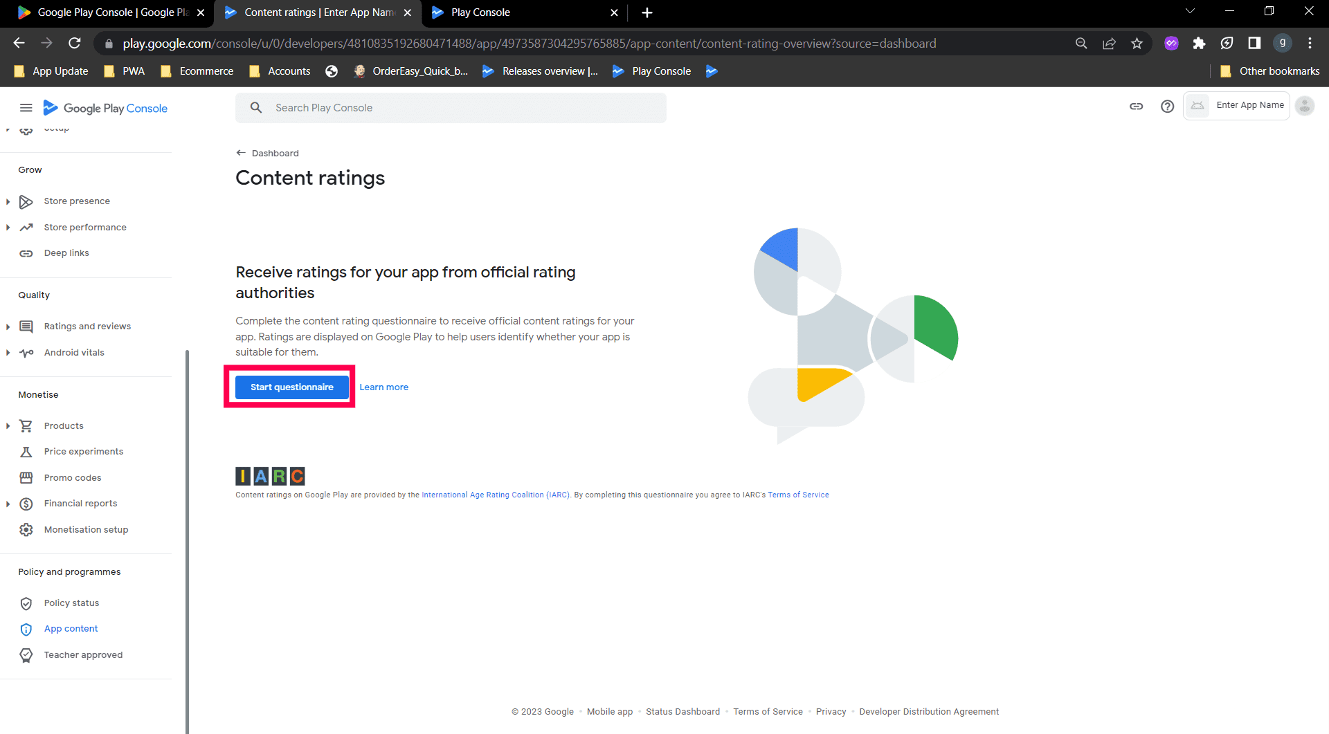 Step 3 : Click on Content rating